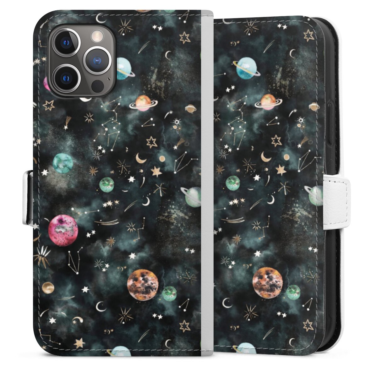 For our Sideflip Case we are using our advanced direct printing technology. The back and frontside are fully printabale, the inside of the phone bag is left unprinted. You can order the phone case without print, printed completely or also with a partial print.