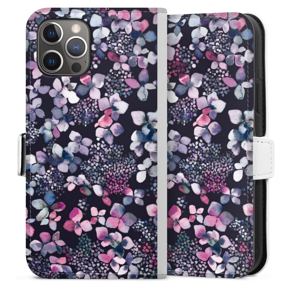 For our Sideflip Case we are using our advanced direct printing technology. The back and frontside are fully printabale, the inside of the phone bag is left unprinted. You can order the phone case without print, printed completely or also with a partial print.