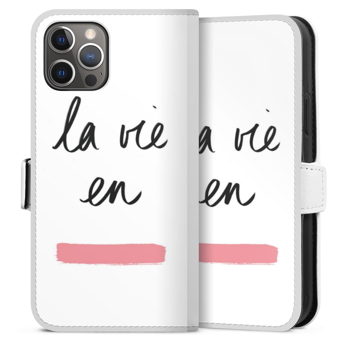 For our Sideflip Case we are using our advanced direct printing technology. The back and frontside are fully printabale, the inside of the phone bag is left unprinted. You can order the phone case without print, printed completely or also with a partial print.
