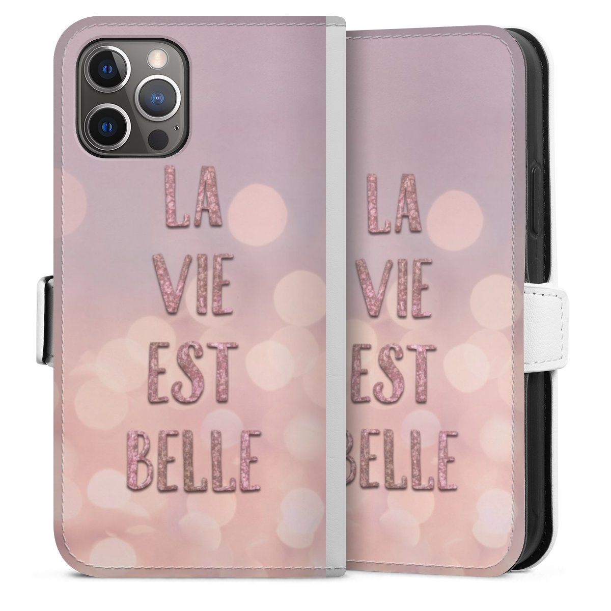 For our Sideflip Case we are using our advanced direct printing technology. The back and frontside are fully printabale, the inside of the phone bag is left unprinted. You can order the phone case without print, printed completely or also with a partial print.