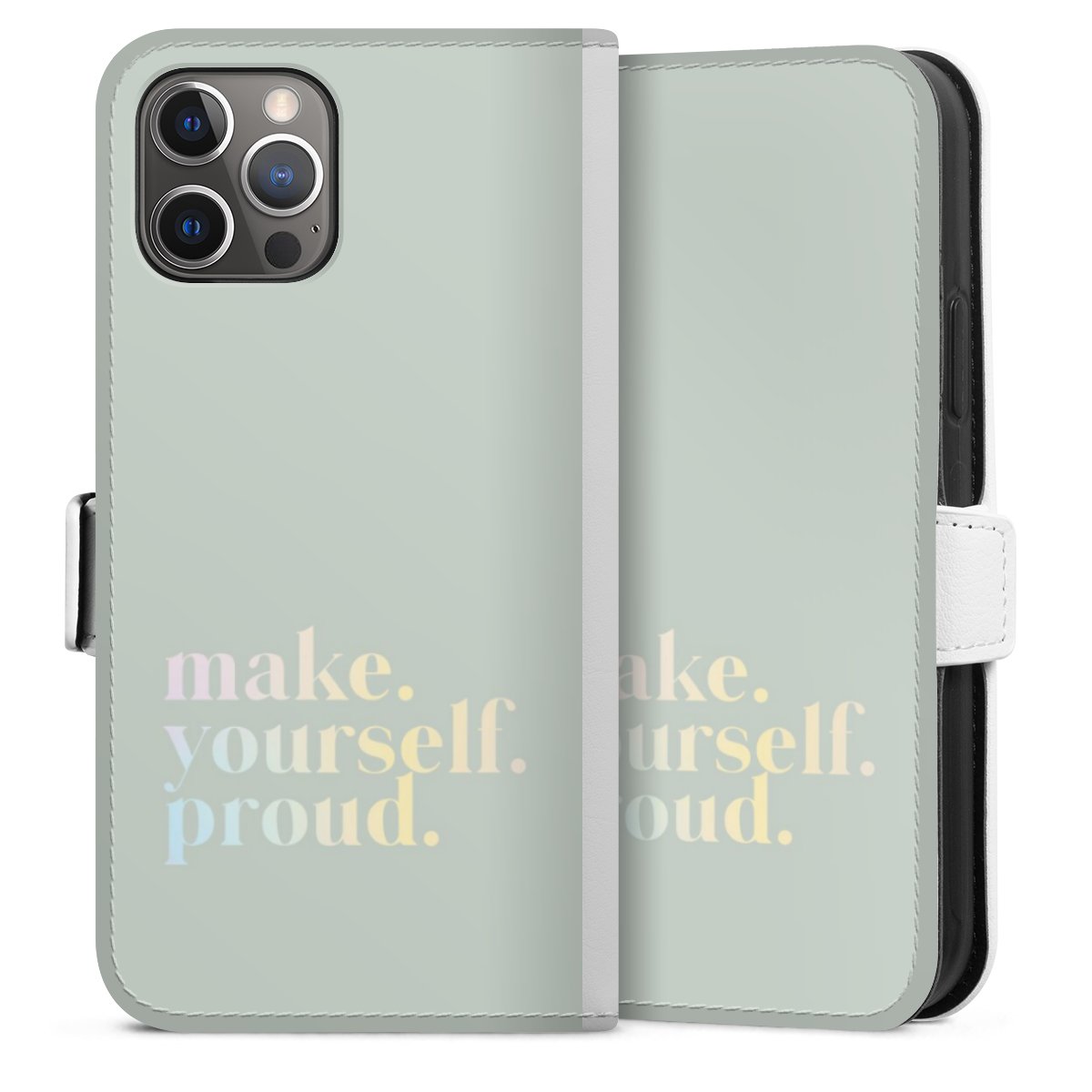 For our Sideflip Case we are using our advanced direct printing technology. The back and frontside are fully printabale, the inside of the phone bag is left unprinted. You can order the phone case without print, printed completely or also with a partial print.