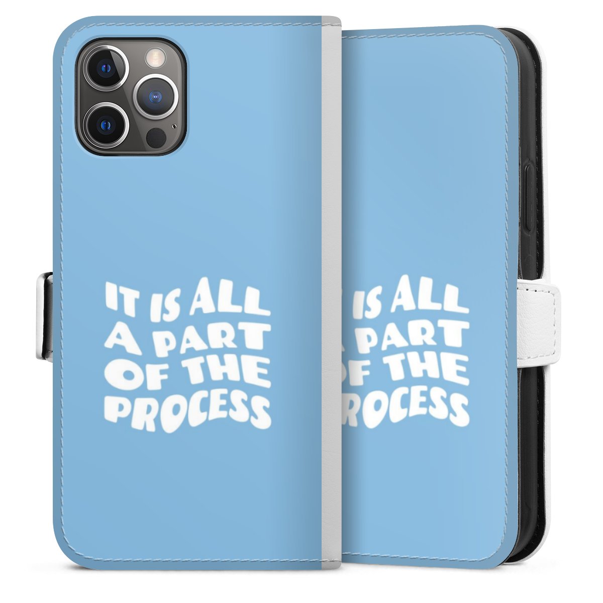 For our Sideflip Case we are using our advanced direct printing technology. The back and frontside are fully printabale, the inside of the phone bag is left unprinted. You can order the phone case without print, printed completely or also with a partial print.