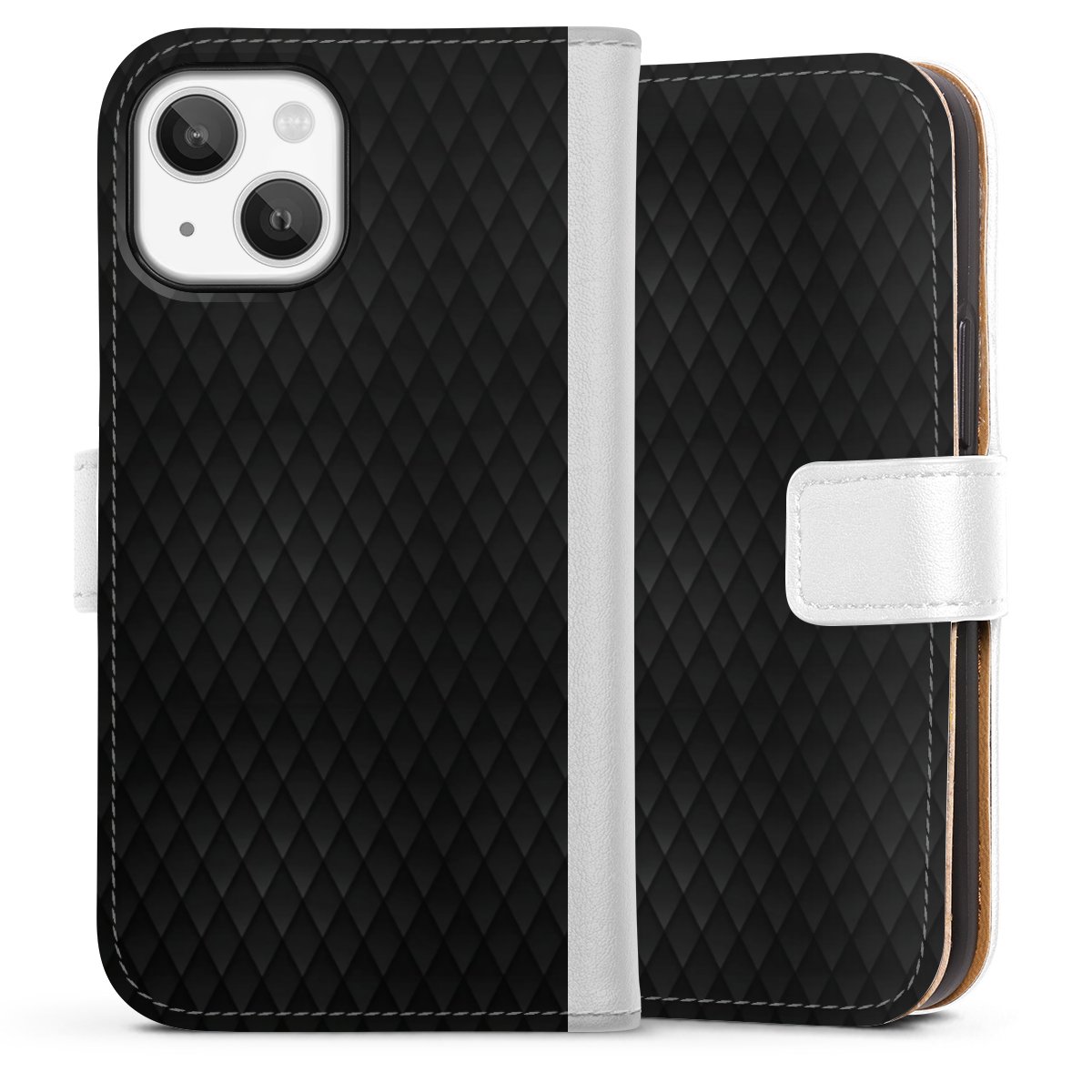 For our Sideflip Case we are using our advanced direct printing technology. The back and frontside are fully printabale, the inside of the phone bag is left unprinted. You can order the phone case without print, printed completely or also with a partial print.