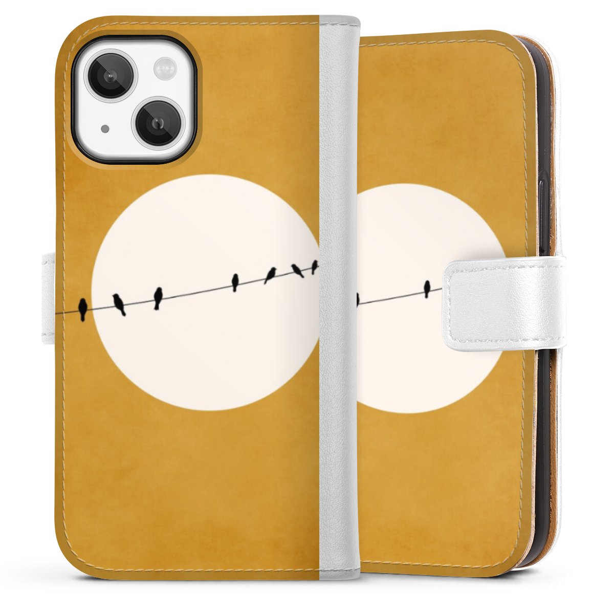 For our Sideflip Case we are using our advanced direct printing technology. The back and frontside are fully printabale, the inside of the phone bag is left unprinted. You can order the phone case without print, printed completely or also with a partial print.