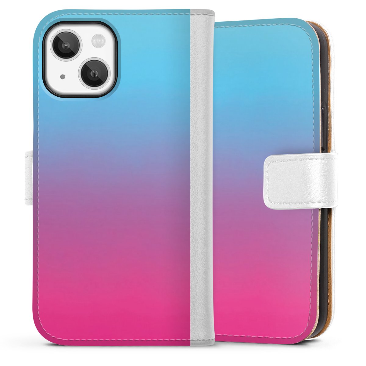 For our Sideflip Case we are using our advanced direct printing technology. The back and frontside are fully printabale, the inside of the phone bag is left unprinted. You can order the phone case without print, printed completely or also with a partial print.