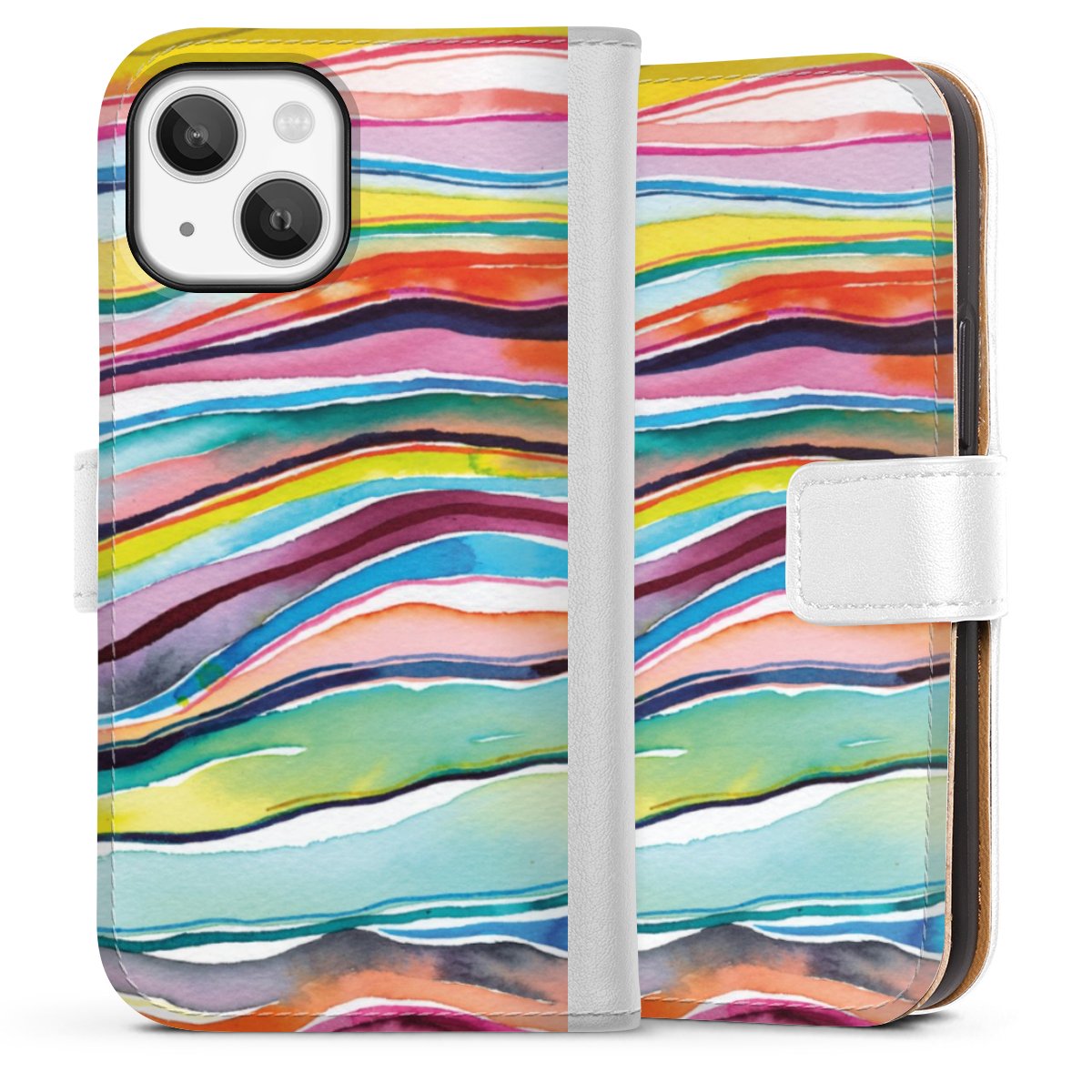 For our Sideflip Case we are using our advanced direct printing technology. The back and frontside are fully printabale, the inside of the phone bag is left unprinted. You can order the phone case without print, printed completely or also with a partial print.