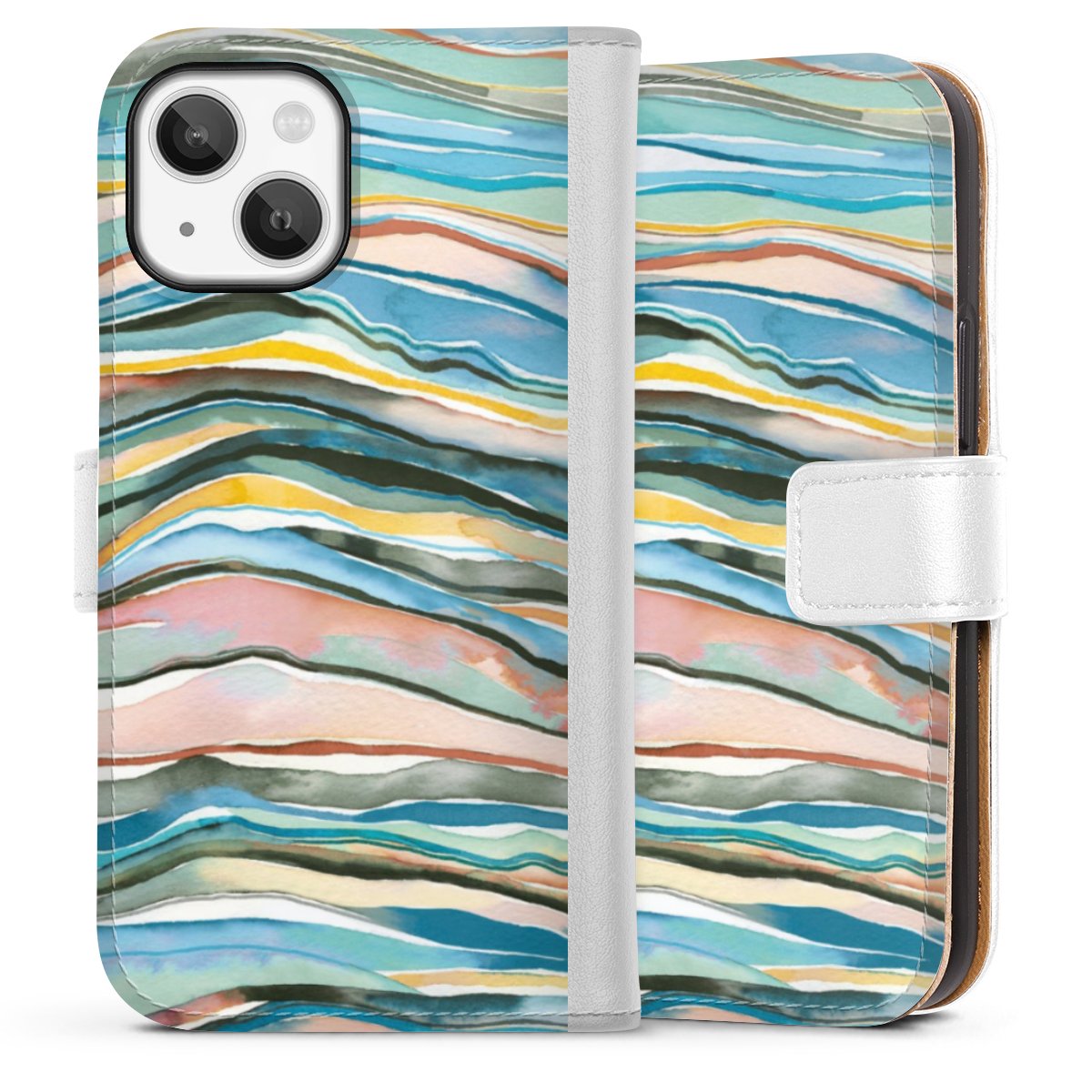 For our Sideflip Case we are using our advanced direct printing technology. The back and frontside are fully printabale, the inside of the phone bag is left unprinted. You can order the phone case without print, printed completely or also with a partial print.