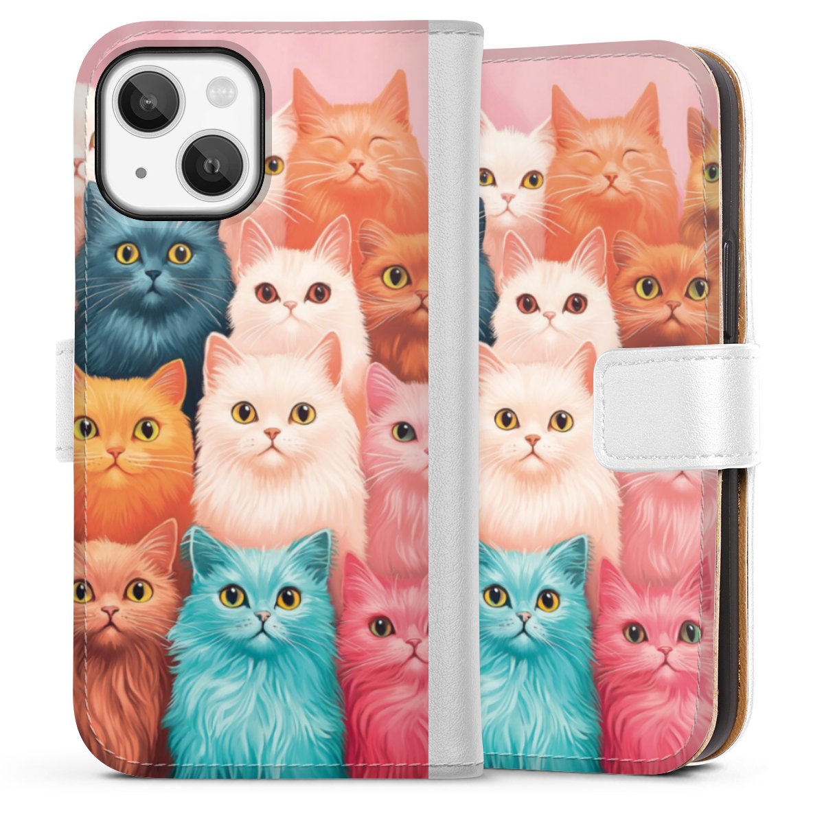 For our Sideflip Case we are using our advanced direct printing technology. The back and frontside are fully printabale, the inside of the phone bag is left unprinted. You can order the phone case without print, printed completely or also with a partial print.
