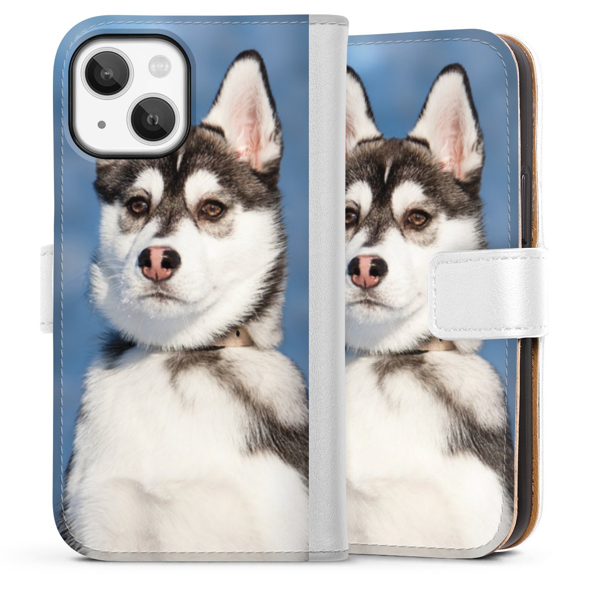 For our Sideflip Case we are using our advanced direct printing technology. The back and frontside are fully printabale, the inside of the phone bag is left unprinted. You can order the phone case without print, printed completely or also with a partial print.