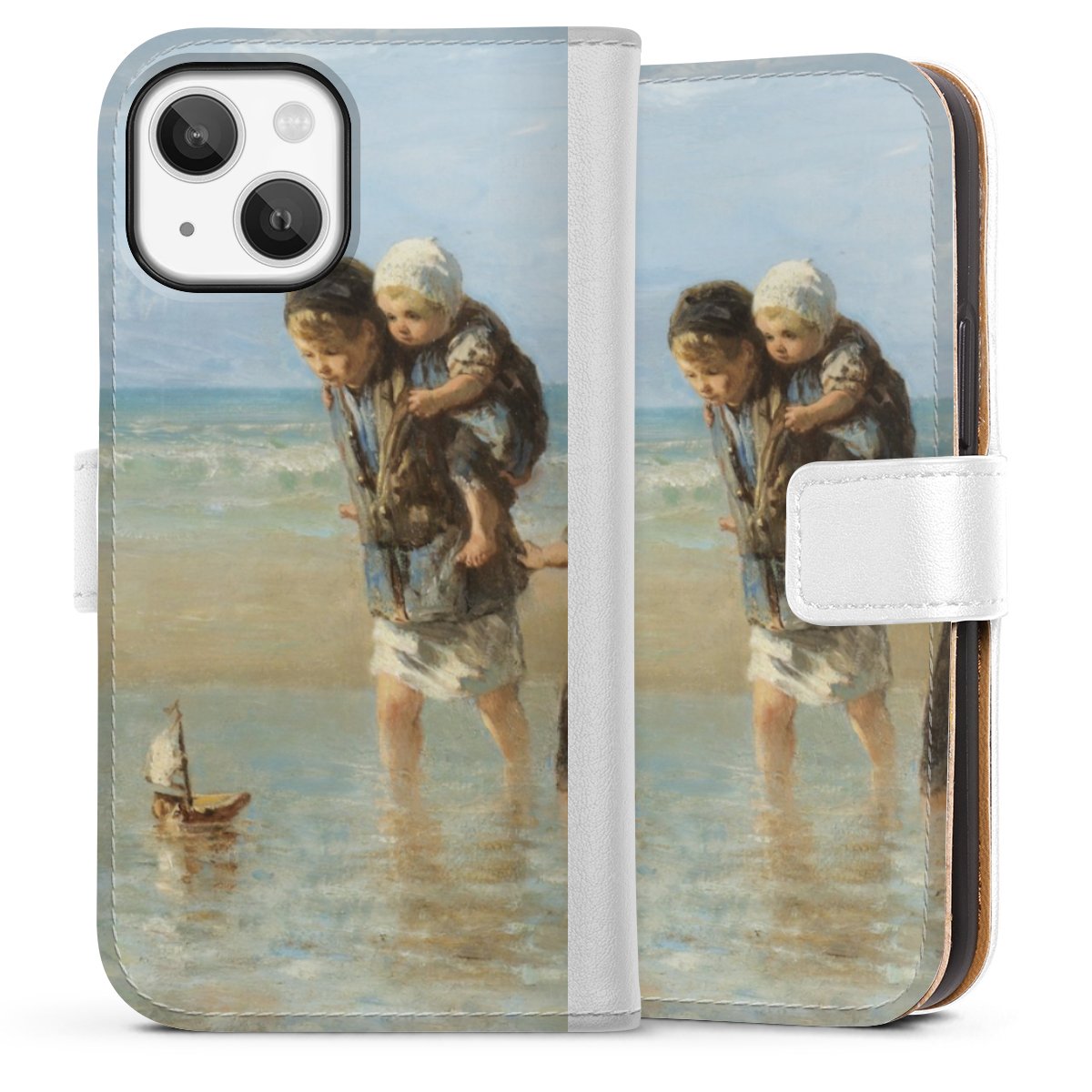 For our Sideflip Case we are using our advanced direct printing technology. The back and frontside are fully printabale, the inside of the phone bag is left unprinted. You can order the phone case without print, printed completely or also with a partial print.