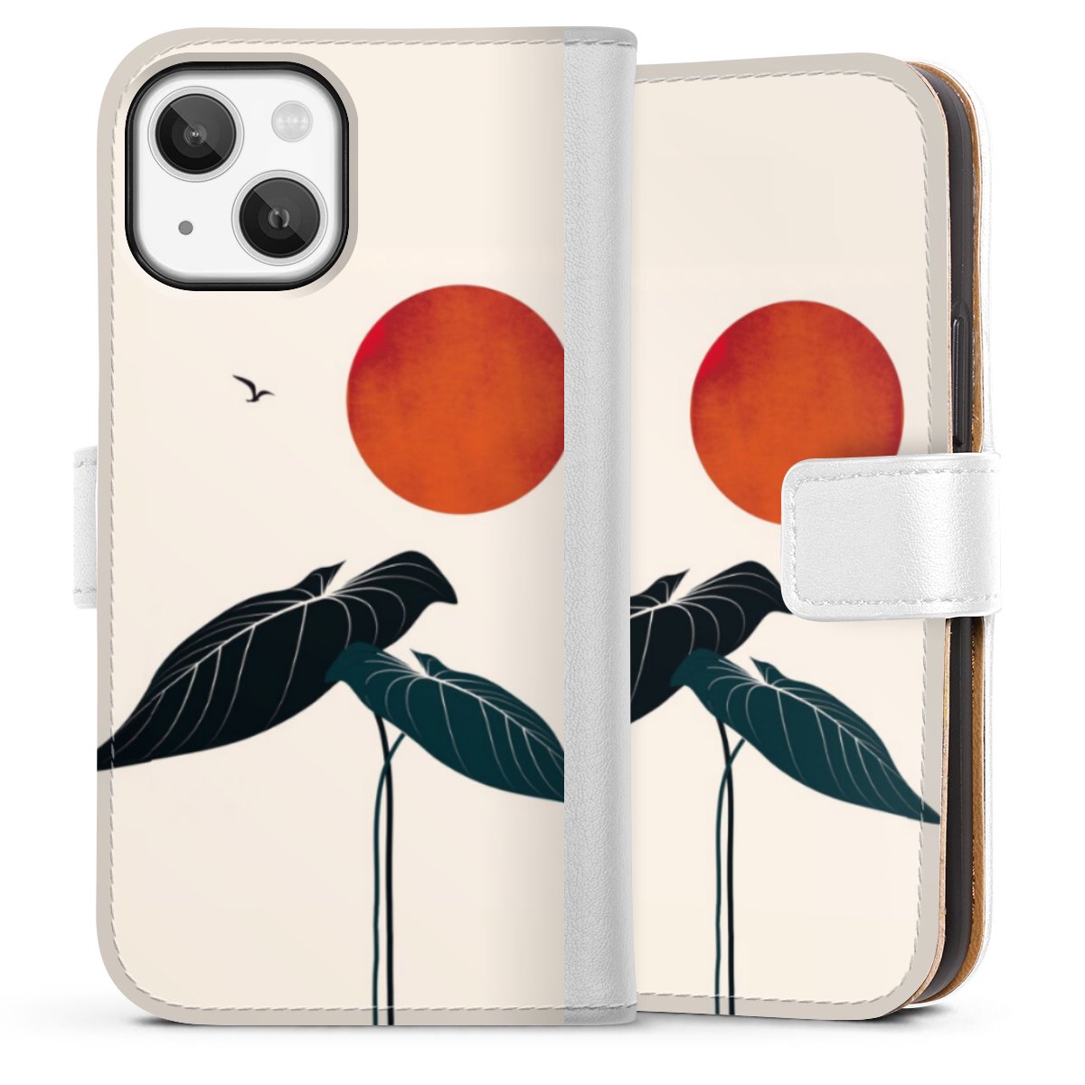 For our Sideflip Case we are using our advanced direct printing technology. The back and frontside are fully printabale, the inside of the phone bag is left unprinted. You can order the phone case without print, printed completely or also with a partial print.