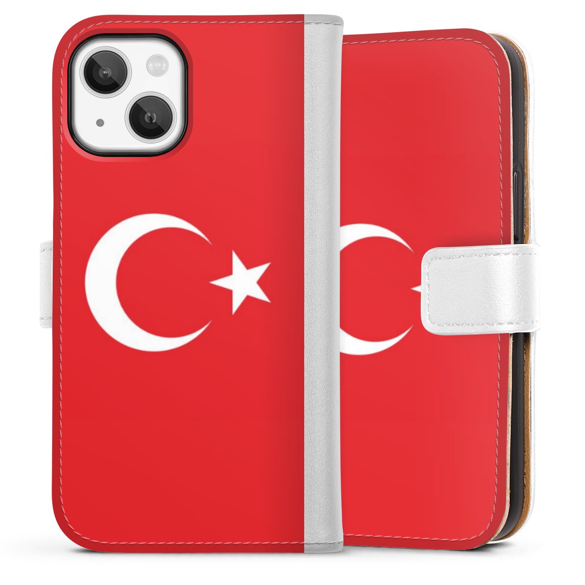 For our Sideflip Case we are using our advanced direct printing technology. The back and frontside are fully printabale, the inside of the phone bag is left unprinted. You can order the phone case without print, printed completely or also with a partial print.