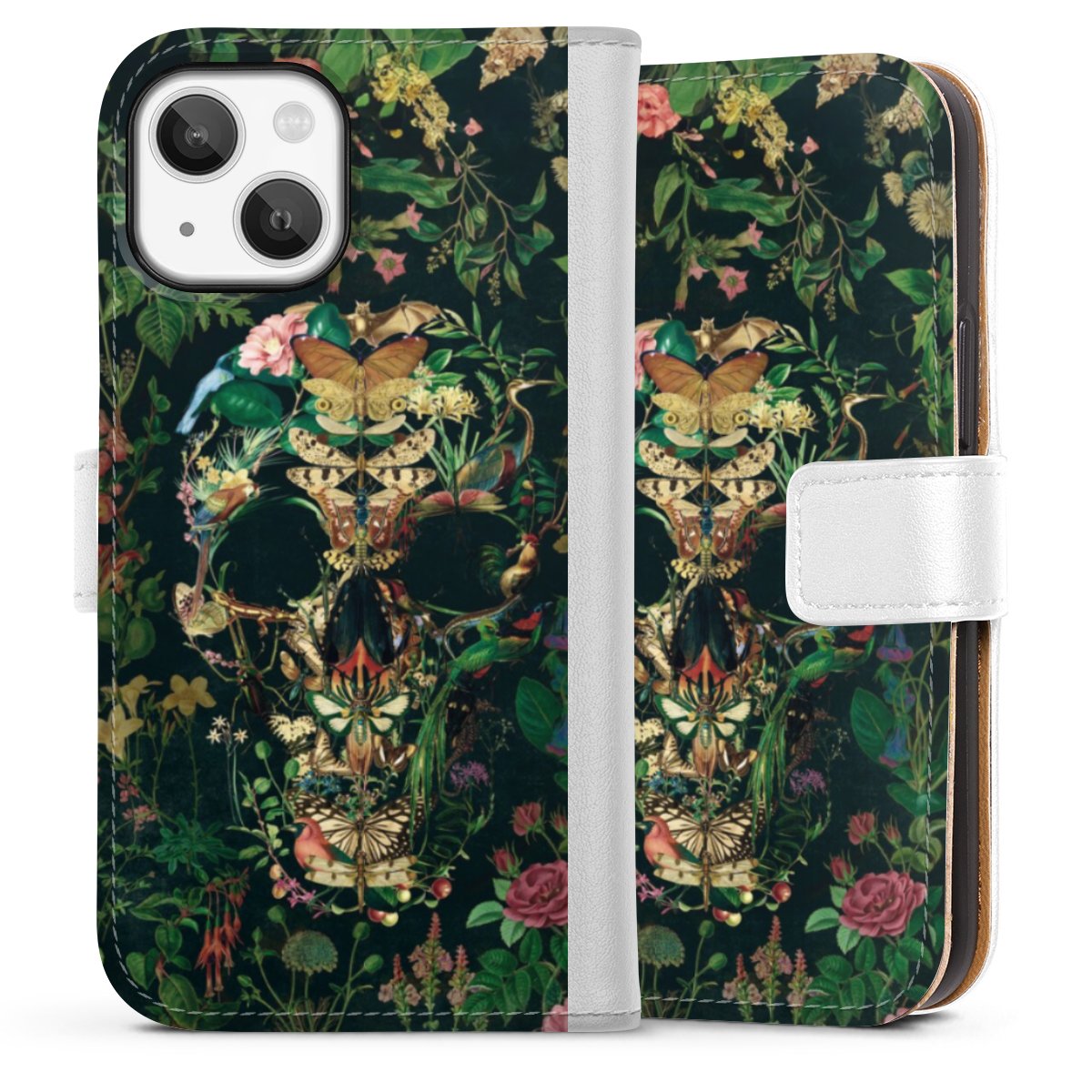 For our Sideflip Case we are using our advanced direct printing technology. The back and frontside are fully printabale, the inside of the phone bag is left unprinted. You can order the phone case without print, printed completely or also with a partial print.