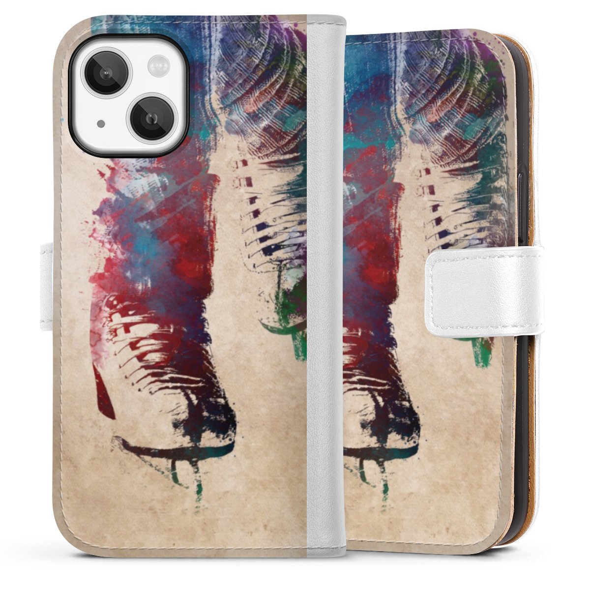 For our Sideflip Case we are using our advanced direct printing technology. The back and frontside are fully printabale, the inside of the phone bag is left unprinted. You can order the phone case without print, printed completely or also with a partial print.