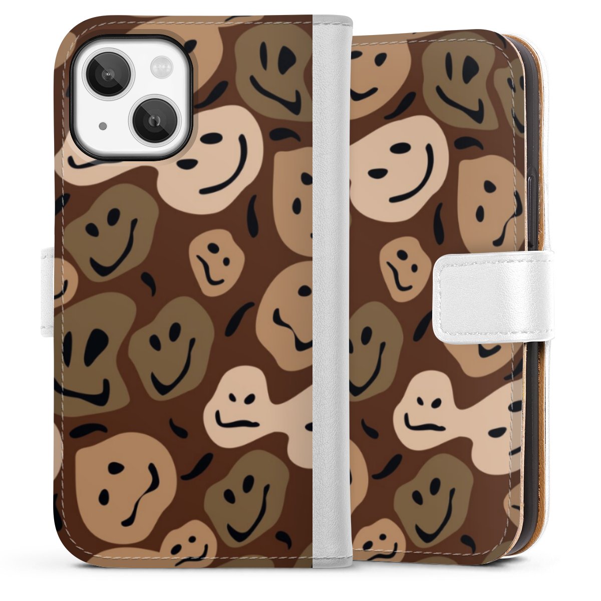 For our Sideflip Case we are using our advanced direct printing technology. The back and frontside are fully printabale, the inside of the phone bag is left unprinted. You can order the phone case without print, printed completely or also with a partial print.