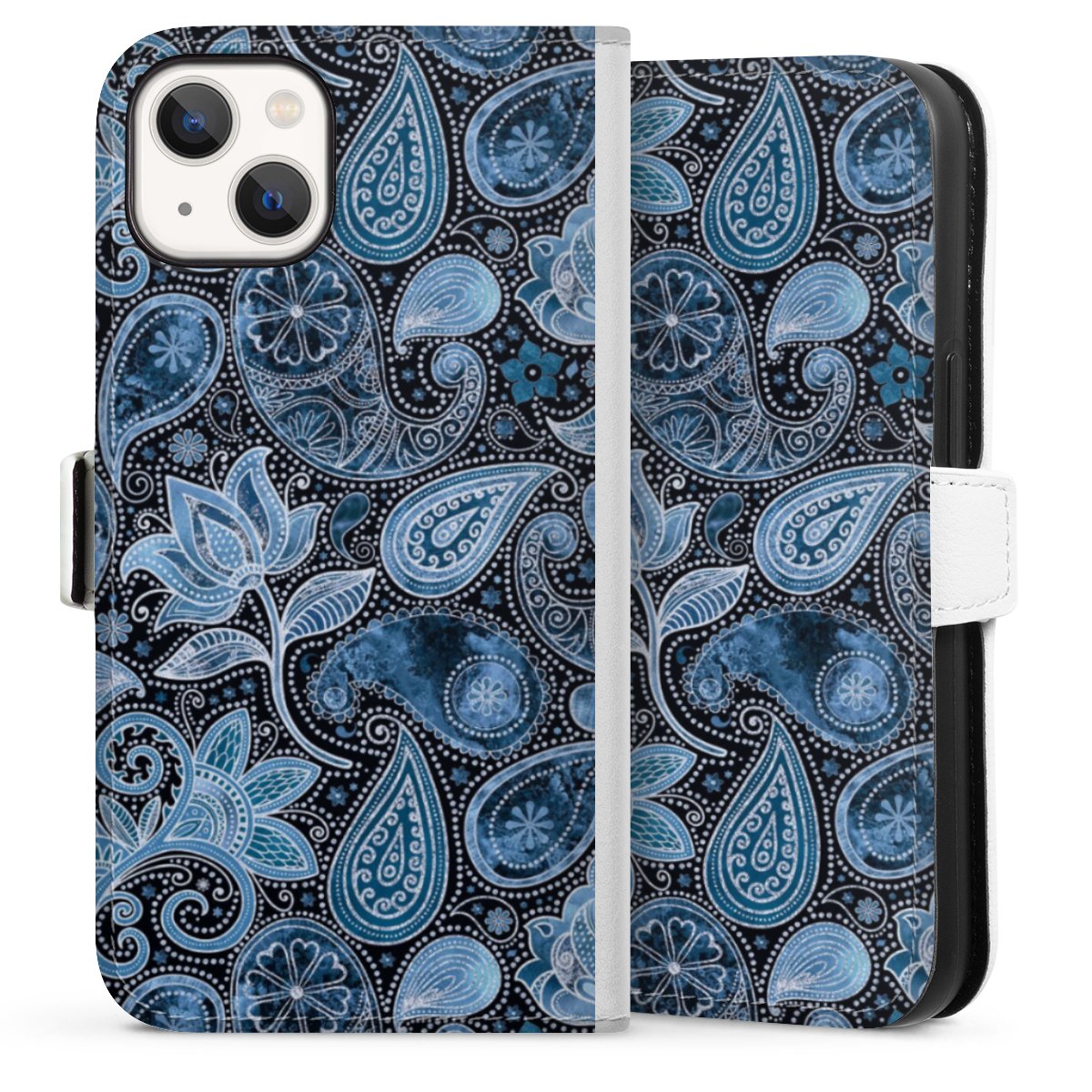 For our Sideflip Case we are using our advanced direct printing technology. The back and frontside are fully printabale, the inside of the phone bag is left unprinted. You can order the phone case without print, printed completely or also with a partial print.