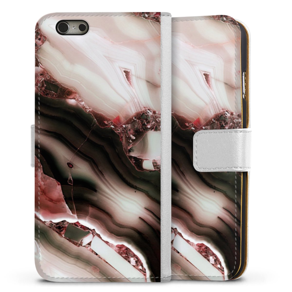 For our Sideflip Case we are using our advanced direct printing technology. The back and frontside are fully printabale, the inside of the phone bag is left unprinted. You can order the phone case without print, printed completely or also with a partial print.