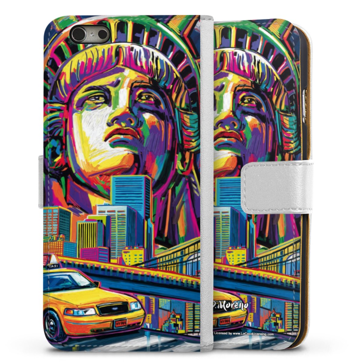 For our Sideflip Case we are using our advanced direct printing technology. The back and frontside are fully printabale, the inside of the phone bag is left unprinted. You can order the phone case without print, printed completely or also with a partial print.