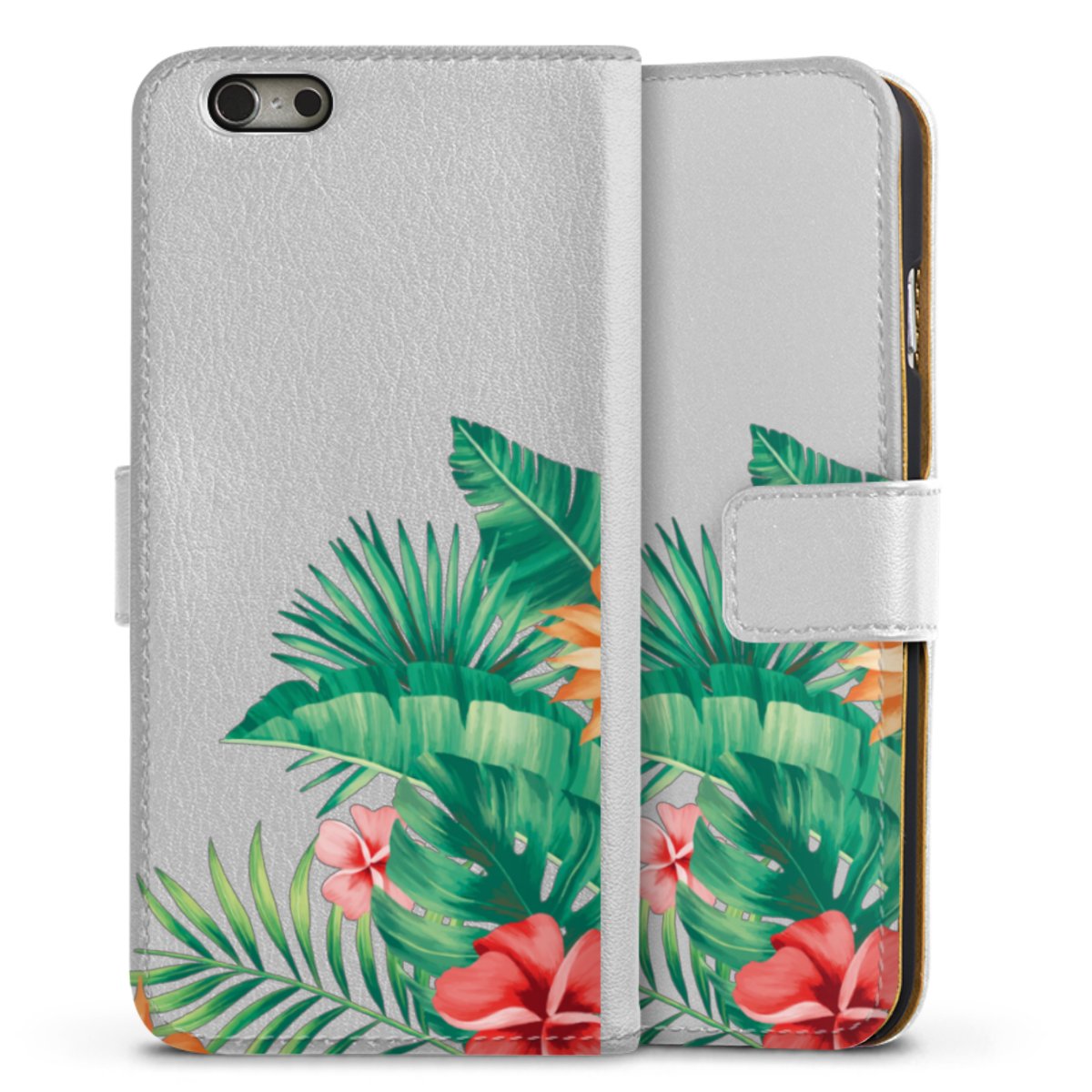 For our Sideflip Case we are using our advanced direct printing technology. The back and frontside are fully printabale, the inside of the phone bag is left unprinted. You can order the phone case without print, printed completely or also with a partial print.