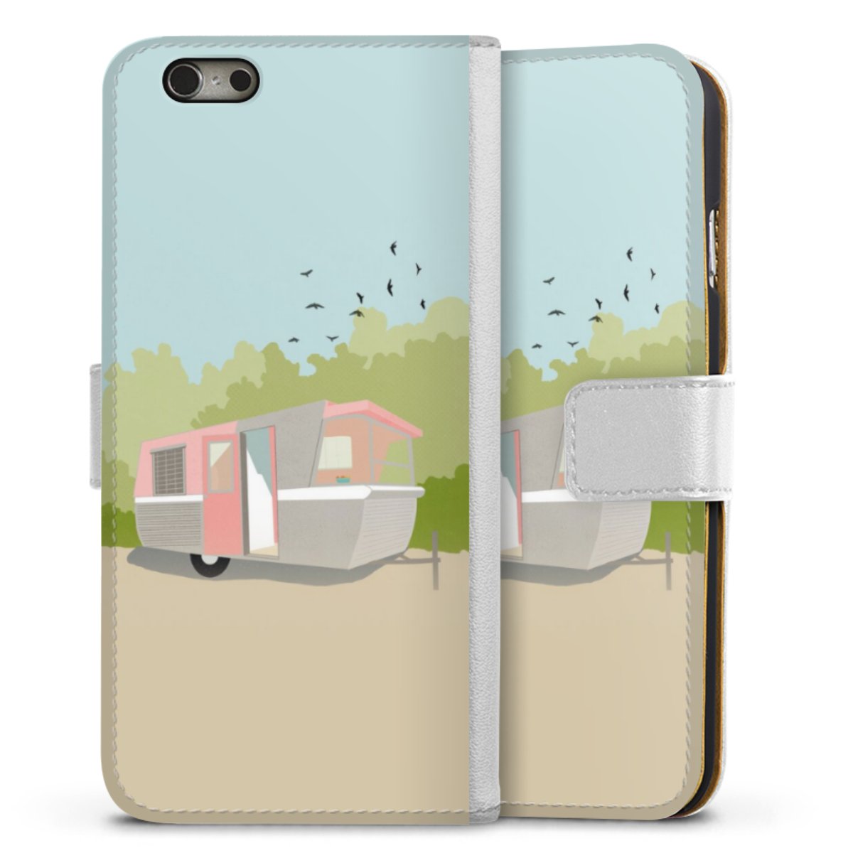 For our Sideflip Case we are using our advanced direct printing technology. The back and frontside are fully printabale, the inside of the phone bag is left unprinted. You can order the phone case without print, printed completely or also with a partial print.
