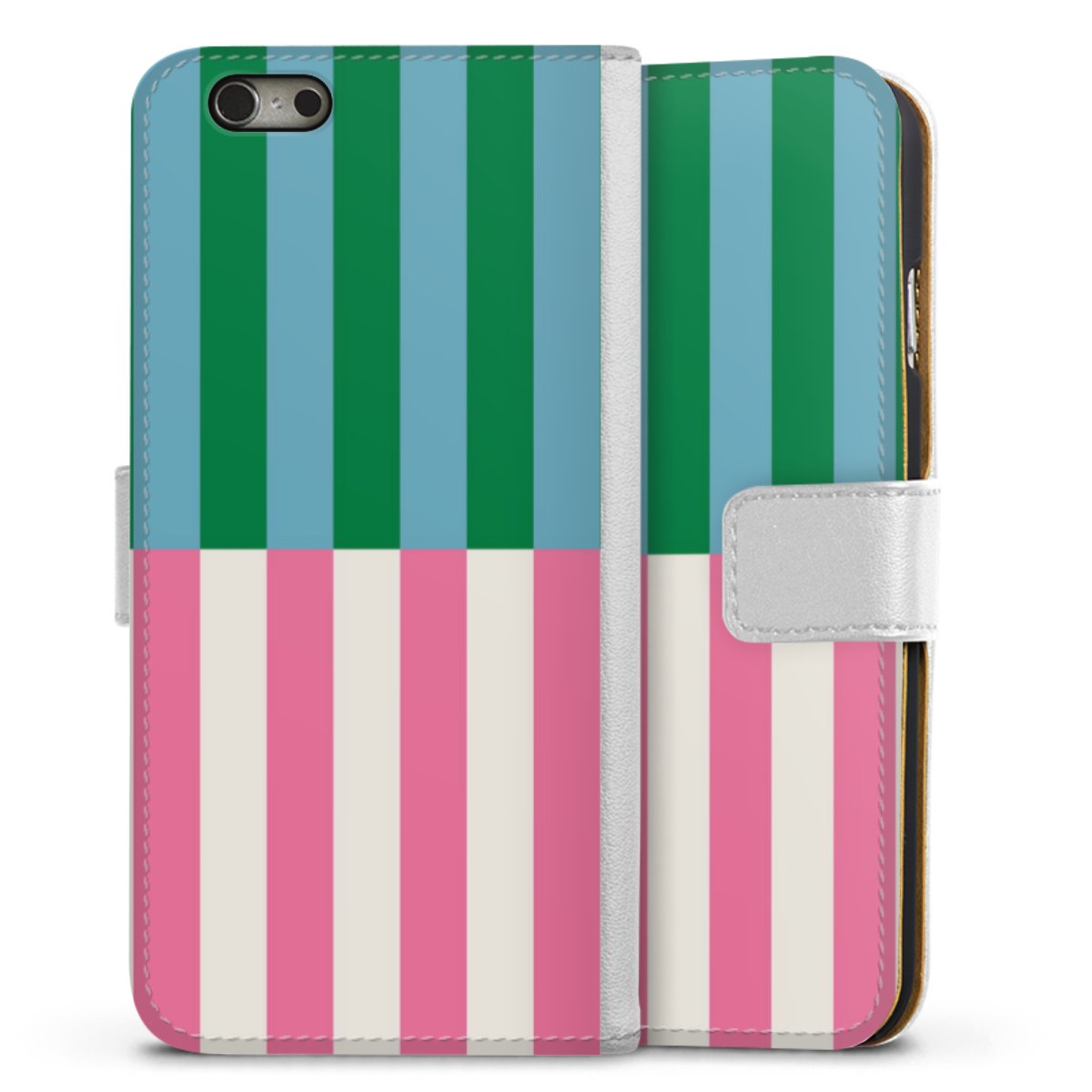 For our Sideflip Case we are using our advanced direct printing technology. The back and frontside are fully printabale, the inside of the phone bag is left unprinted. You can order the phone case without print, printed completely or also with a partial print.