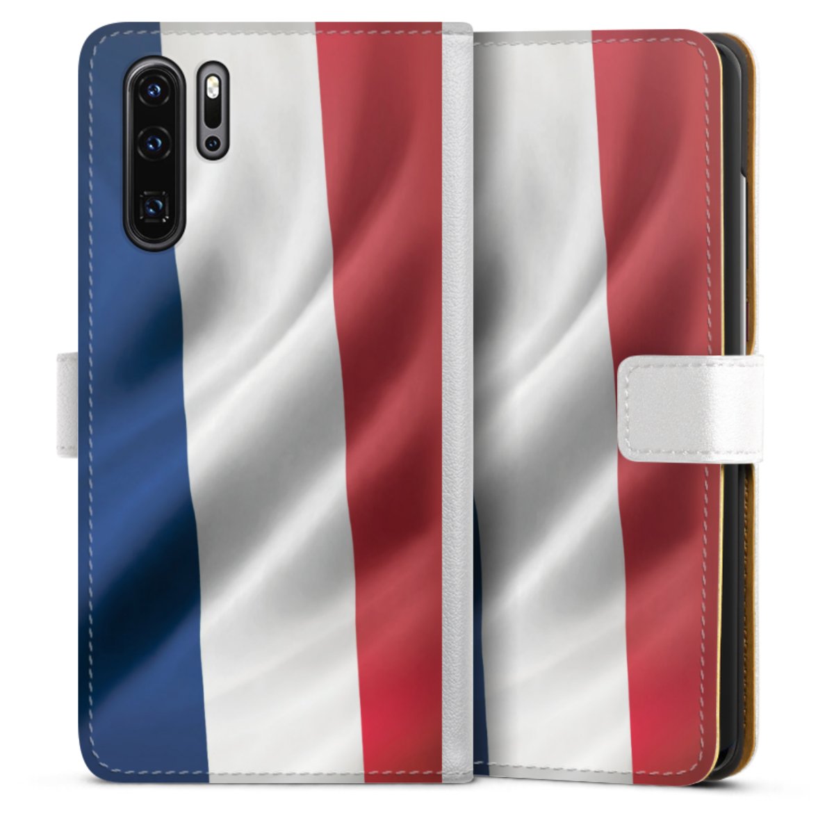 For our Sideflip Case we are using our advanced direct printing technology. The back and frontside are fully printabale, the inside of the phone bag is left unprinted. You can order the phone case without print, printed completely or also with a partial print.