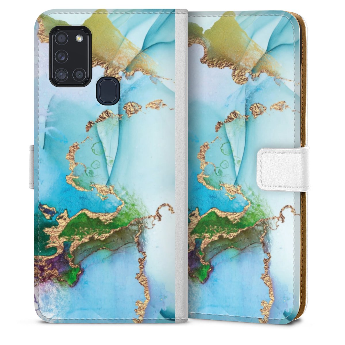 For our Sideflip Case we are using our advanced direct printing technology. The back and frontside are fully printabale, the inside of the phone bag is left unprinted. You can order the phone case without print, printed completely or also with a partial print.