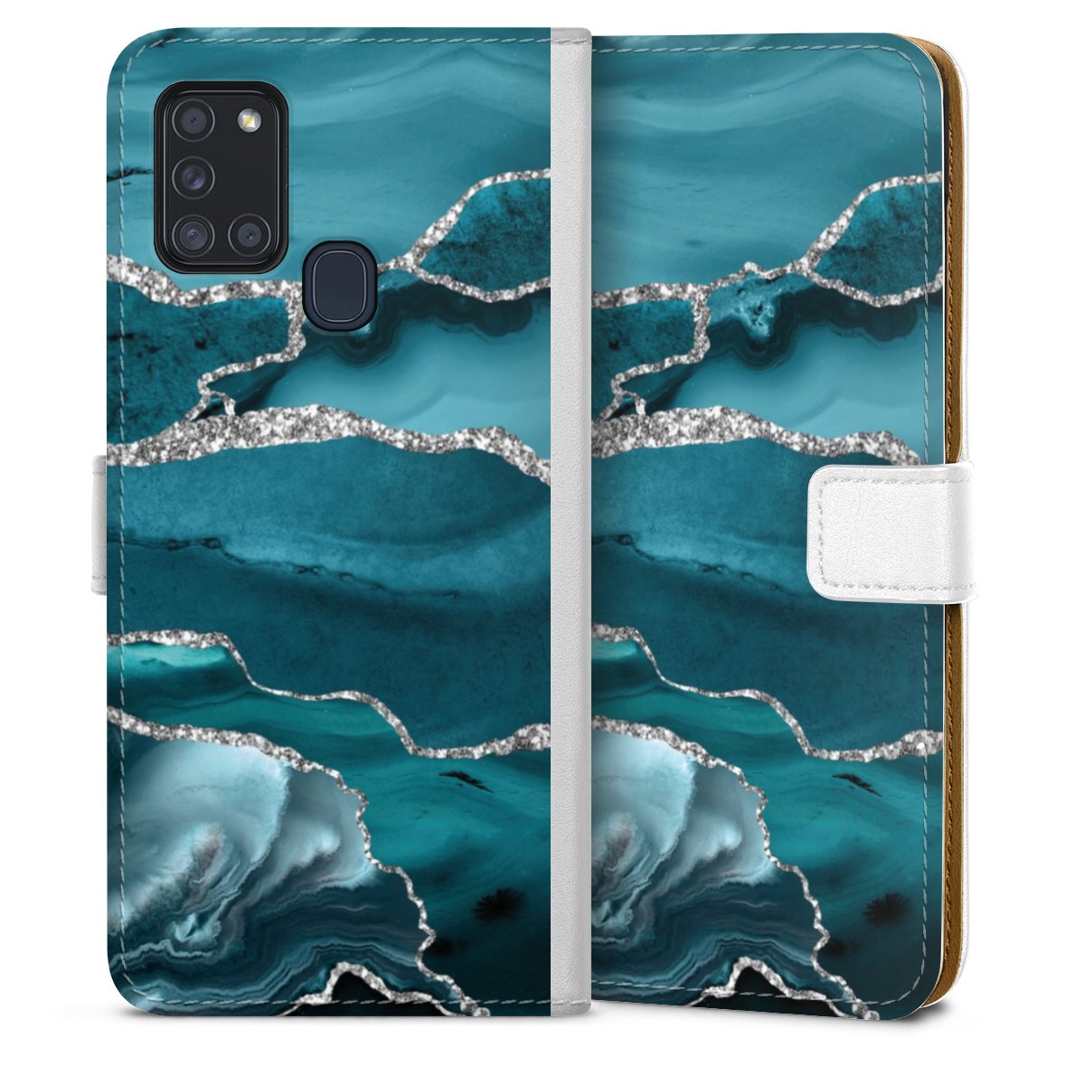For our Sideflip Case we are using our advanced direct printing technology. The back and frontside are fully printabale, the inside of the phone bag is left unprinted. You can order the phone case without print, printed completely or also with a partial print.