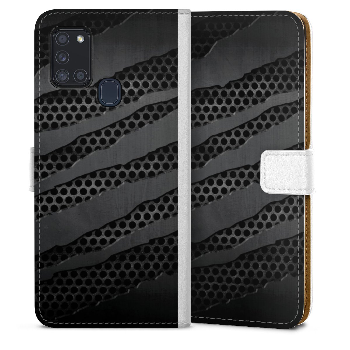 For our Sideflip Case we are using our advanced direct printing technology. The back and frontside are fully printabale, the inside of the phone bag is left unprinted. You can order the phone case without print, printed completely or also with a partial print.