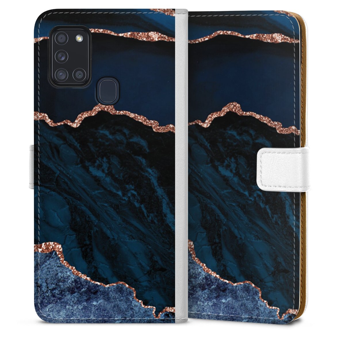 For our Sideflip Case we are using our advanced direct printing technology. The back and frontside are fully printabale, the inside of the phone bag is left unprinted. You can order the phone case without print, printed completely or also with a partial print.