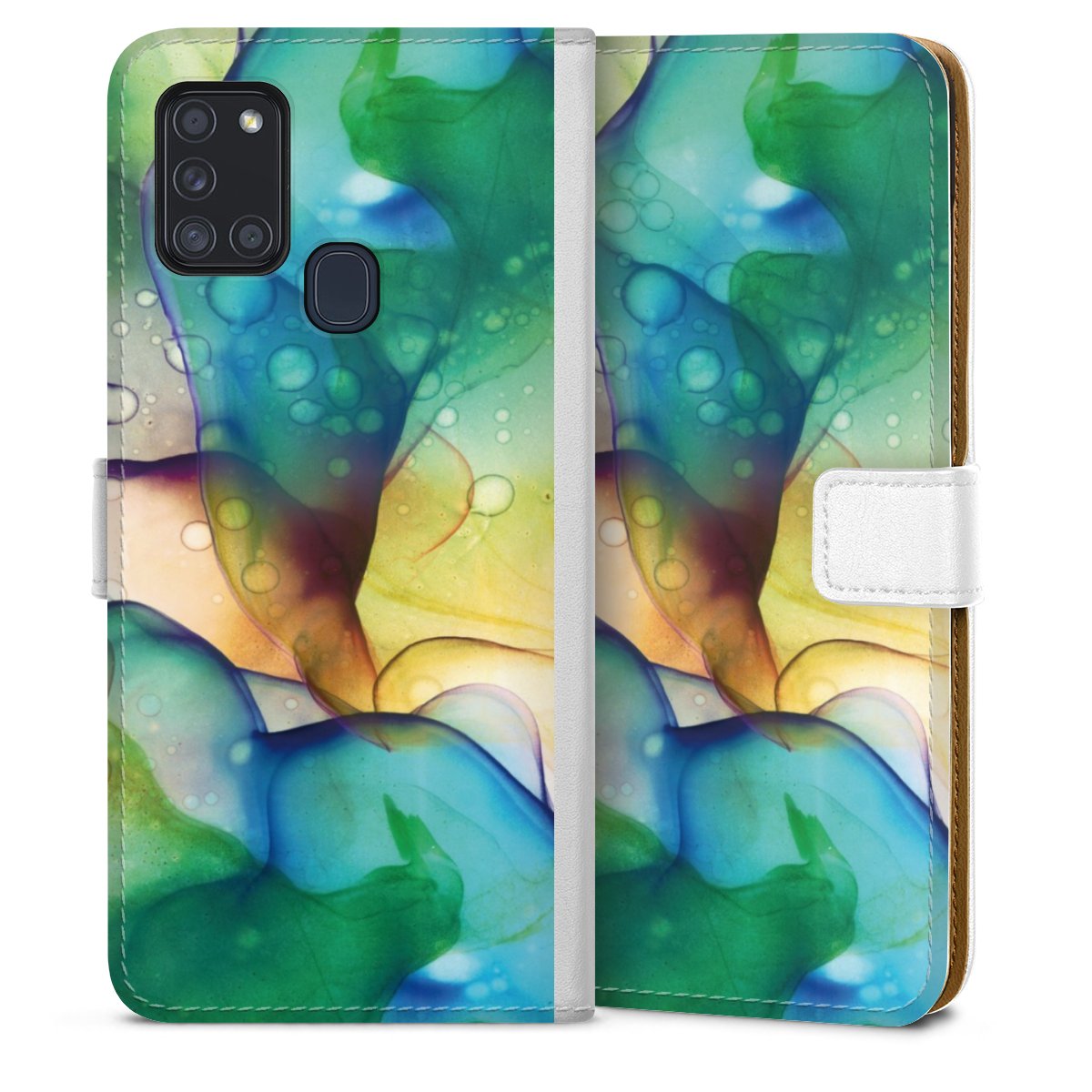 For our Sideflip Case we are using our advanced direct printing technology. The back and frontside are fully printabale, the inside of the phone bag is left unprinted. You can order the phone case without print, printed completely or also with a partial print.
