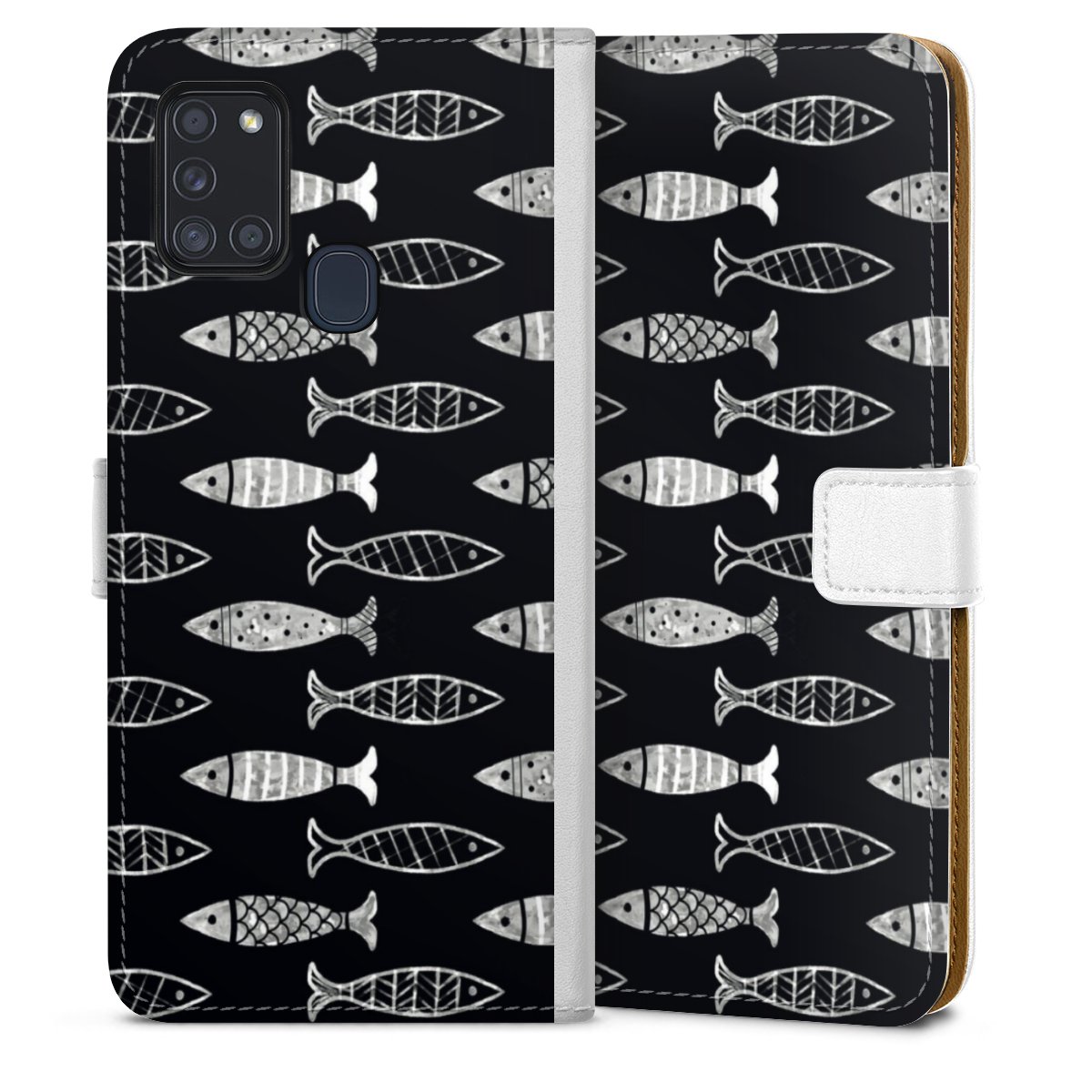For our Sideflip Case we are using our advanced direct printing technology. The back and frontside are fully printabale, the inside of the phone bag is left unprinted. You can order the phone case without print, printed completely or also with a partial print.