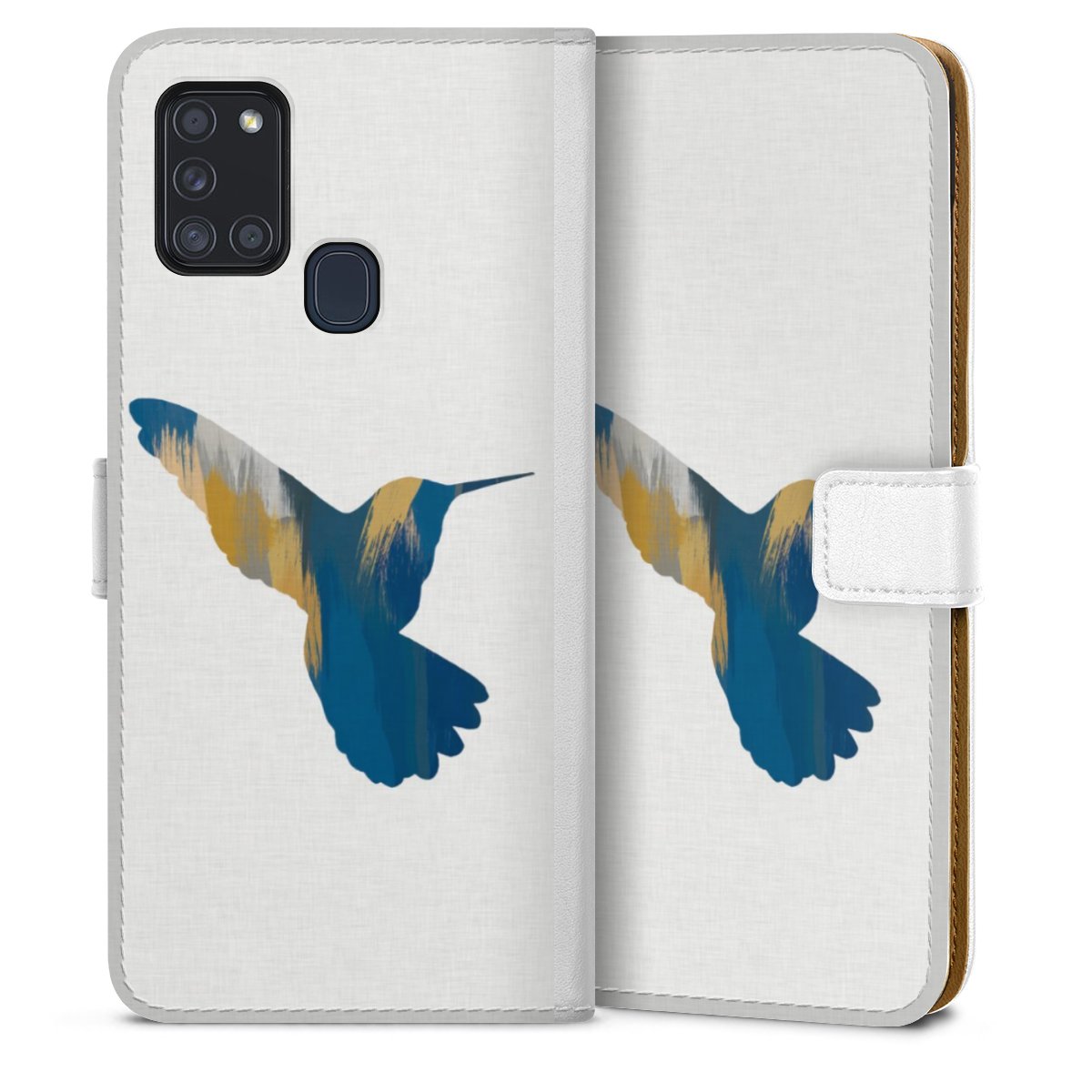 For our Sideflip Case we are using our advanced direct printing technology. The back and frontside are fully printabale, the inside of the phone bag is left unprinted. You can order the phone case without print, printed completely or also with a partial print.
