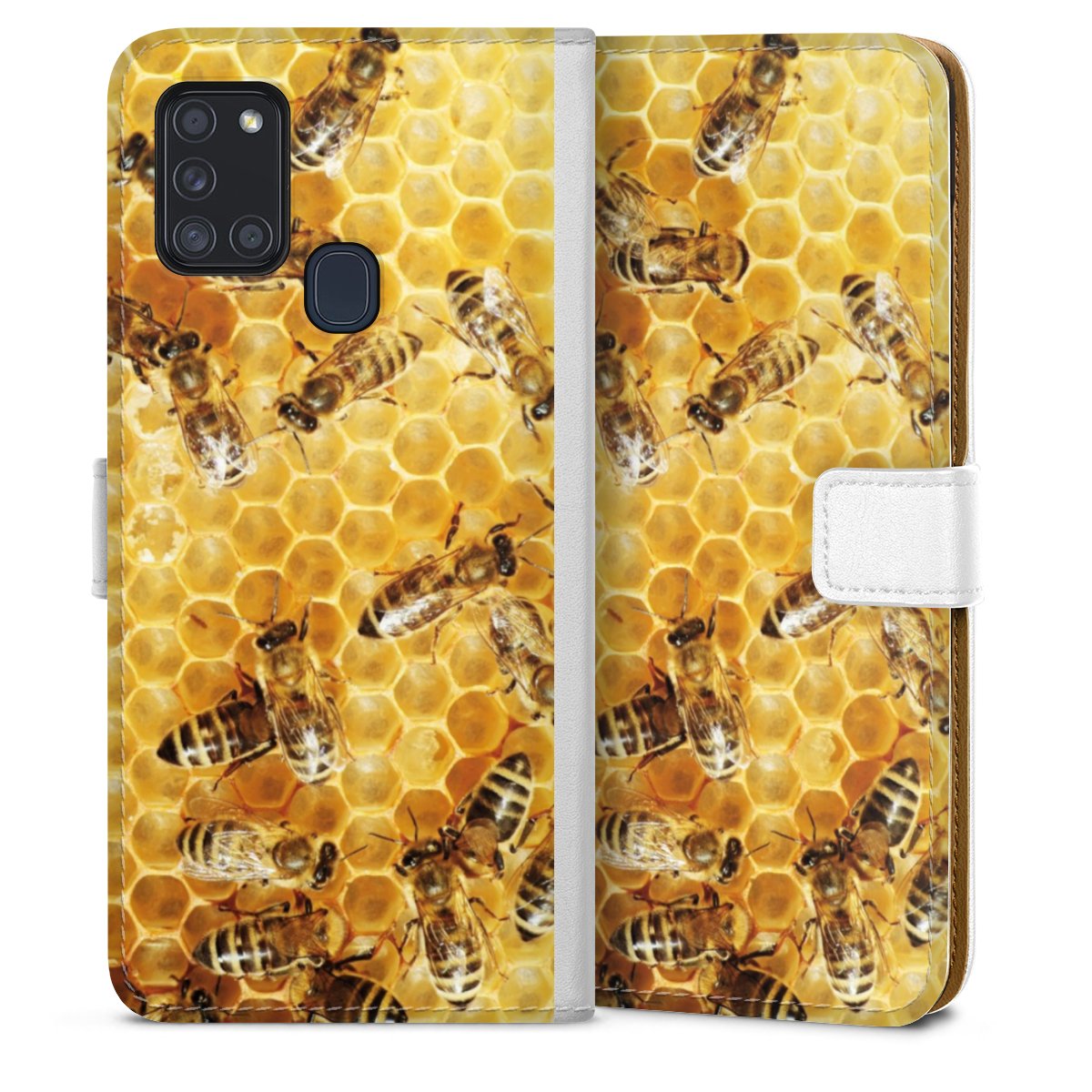 For our Sideflip Case we are using our advanced direct printing technology. The back and frontside are fully printabale, the inside of the phone bag is left unprinted. You can order the phone case without print, printed completely or also with a partial print.