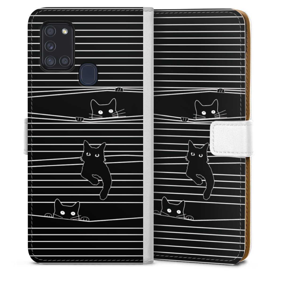 For our Sideflip Case we are using our advanced direct printing technology. The back and frontside are fully printabale, the inside of the phone bag is left unprinted. You can order the phone case without print, printed completely or also with a partial print.