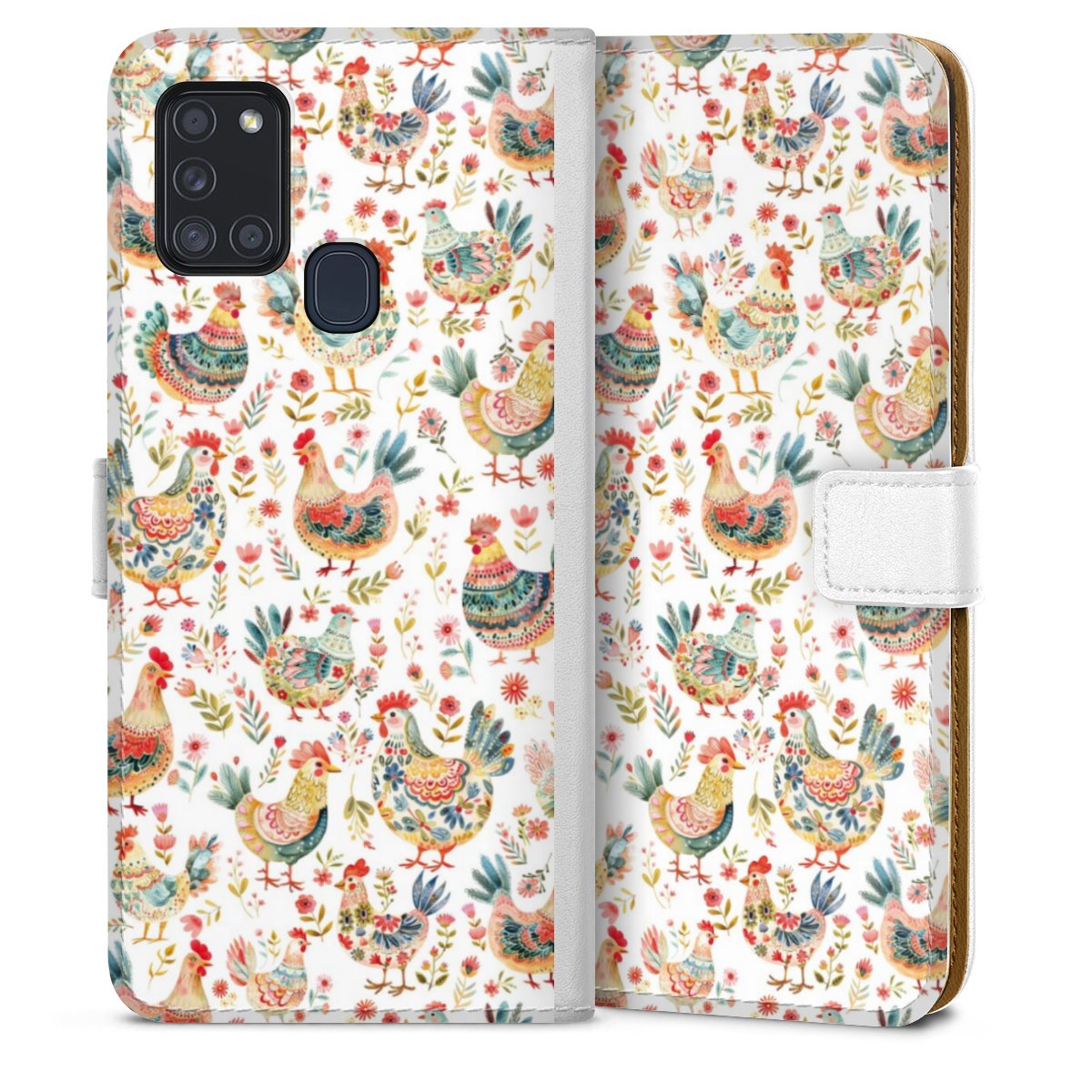 For our Sideflip Case we are using our advanced direct printing technology. The back and frontside are fully printabale, the inside of the phone bag is left unprinted. You can order the phone case without print, printed completely or also with a partial print.