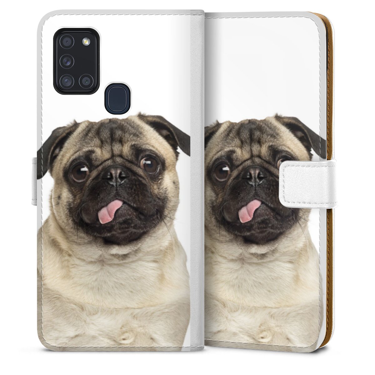 For our Sideflip Case we are using our advanced direct printing technology. The back and frontside are fully printabale, the inside of the phone bag is left unprinted. You can order the phone case without print, printed completely or also with a partial print.