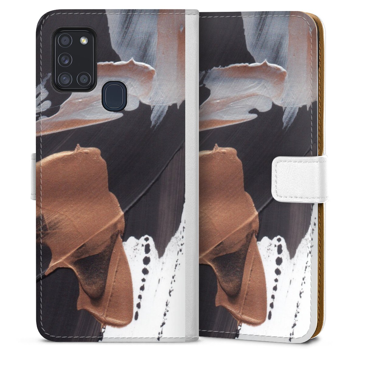 For our Sideflip Case we are using our advanced direct printing technology. The back and frontside are fully printabale, the inside of the phone bag is left unprinted. You can order the phone case without print, printed completely or also with a partial print.