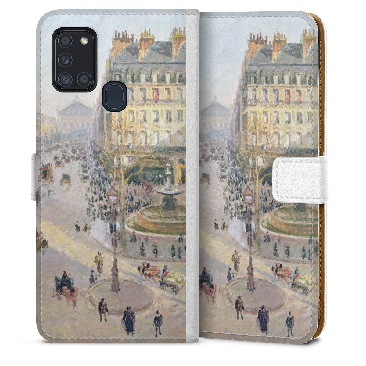 For our Sideflip Case we are using our advanced direct printing technology. The back and frontside are fully printabale, the inside of the phone bag is left unprinted. You can order the phone case without print, printed completely or also with a partial print.