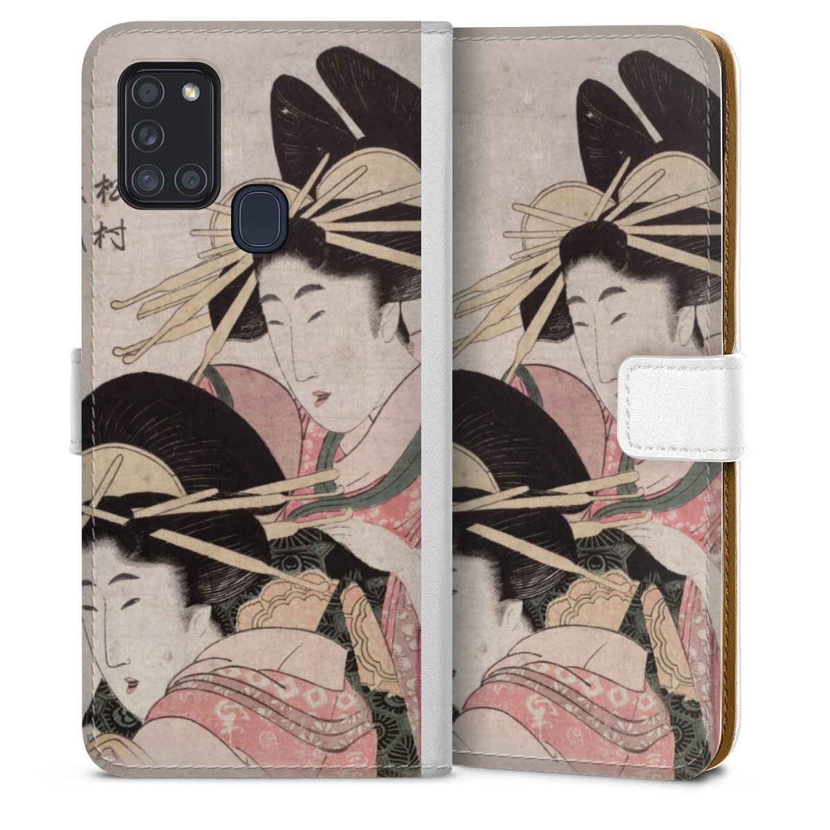 For our Sideflip Case we are using our advanced direct printing technology. The back and frontside are fully printabale, the inside of the phone bag is left unprinted. You can order the phone case without print, printed completely or also with a partial print.
