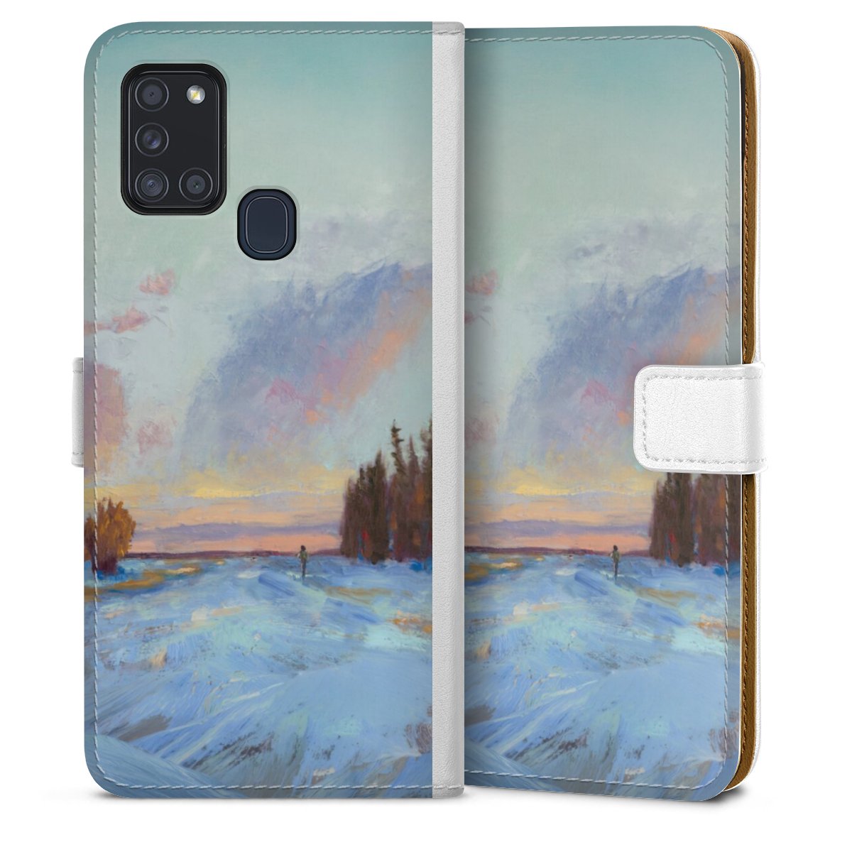 For our Sideflip Case we are using our advanced direct printing technology. The back and frontside are fully printabale, the inside of the phone bag is left unprinted. You can order the phone case without print, printed completely or also with a partial print.