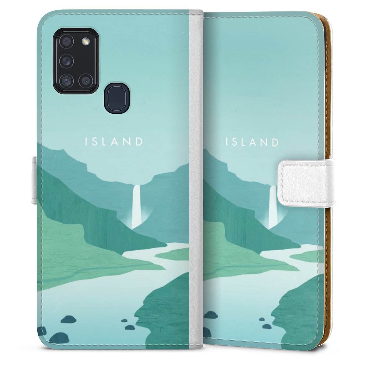 For our Sideflip Case we are using our advanced direct printing technology. The back and frontside are fully printabale, the inside of the phone bag is left unprinted. You can order the phone case without print, printed completely or also with a partial print.