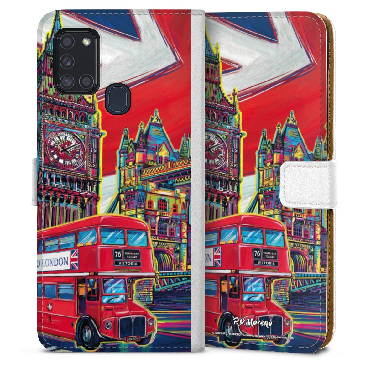 For our Sideflip Case we are using our advanced direct printing technology. The back and frontside are fully printabale, the inside of the phone bag is left unprinted. You can order the phone case without print, printed completely or also with a partial print.