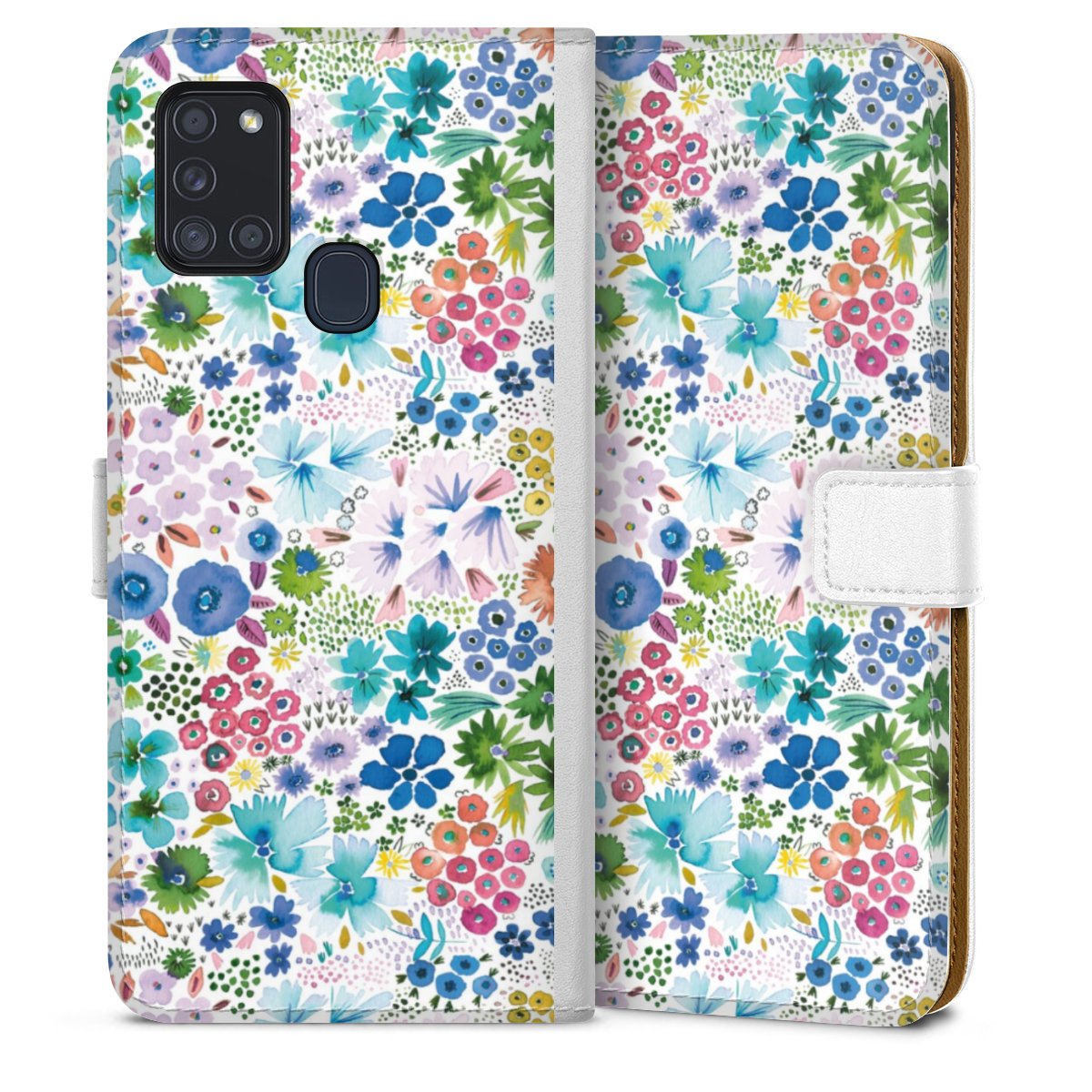 For our Sideflip Case we are using our advanced direct printing technology. The back and frontside are fully printabale, the inside of the phone bag is left unprinted. You can order the phone case without print, printed completely or also with a partial print.