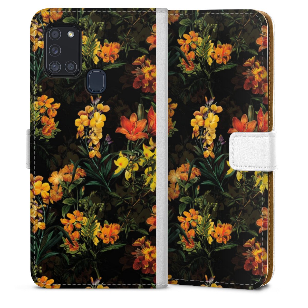 For our Sideflip Case we are using our advanced direct printing technology. The back and frontside are fully printabale, the inside of the phone bag is left unprinted. You can order the phone case without print, printed completely or also with a partial print.