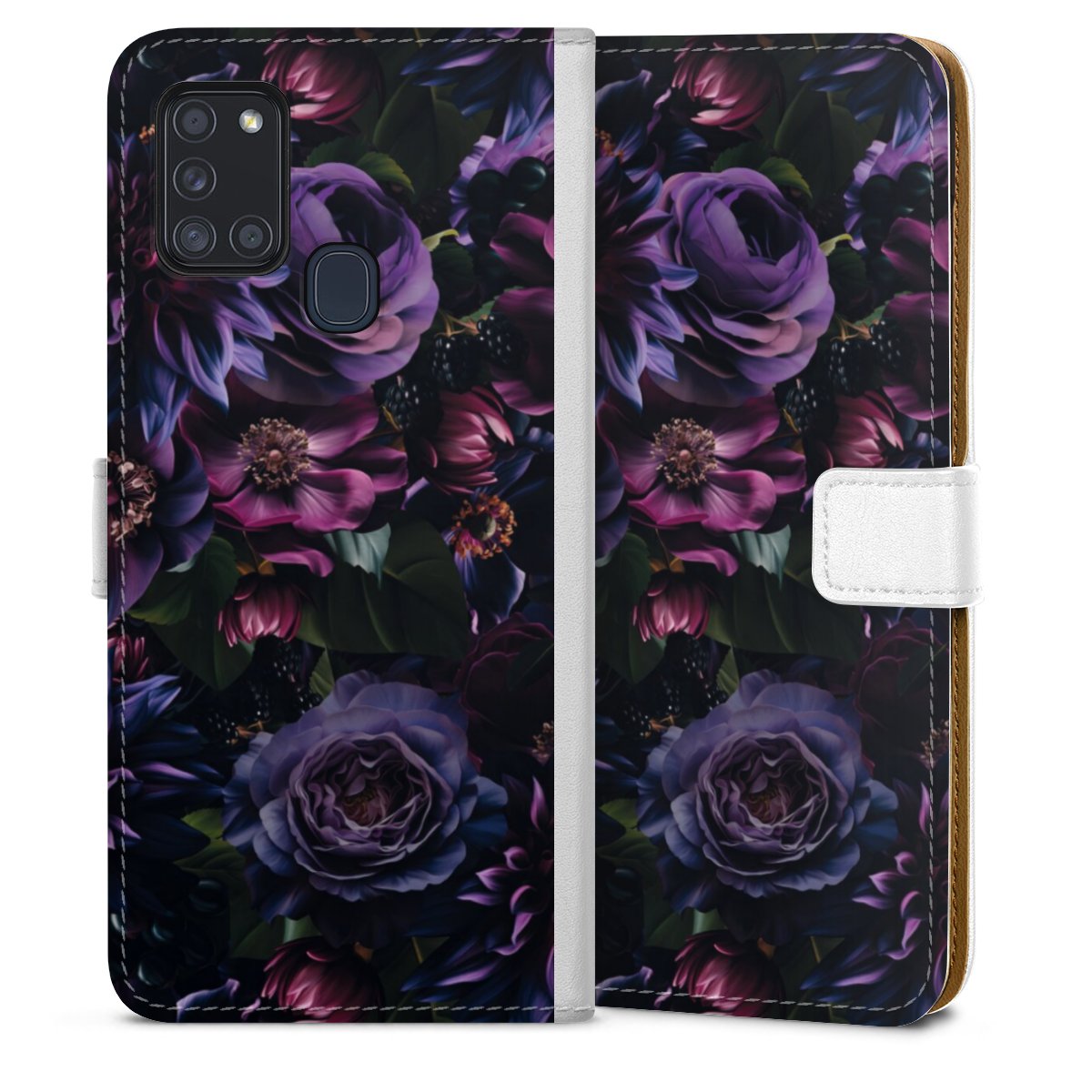 For our Sideflip Case we are using our advanced direct printing technology. The back and frontside are fully printabale, the inside of the phone bag is left unprinted. You can order the phone case without print, printed completely or also with a partial print.