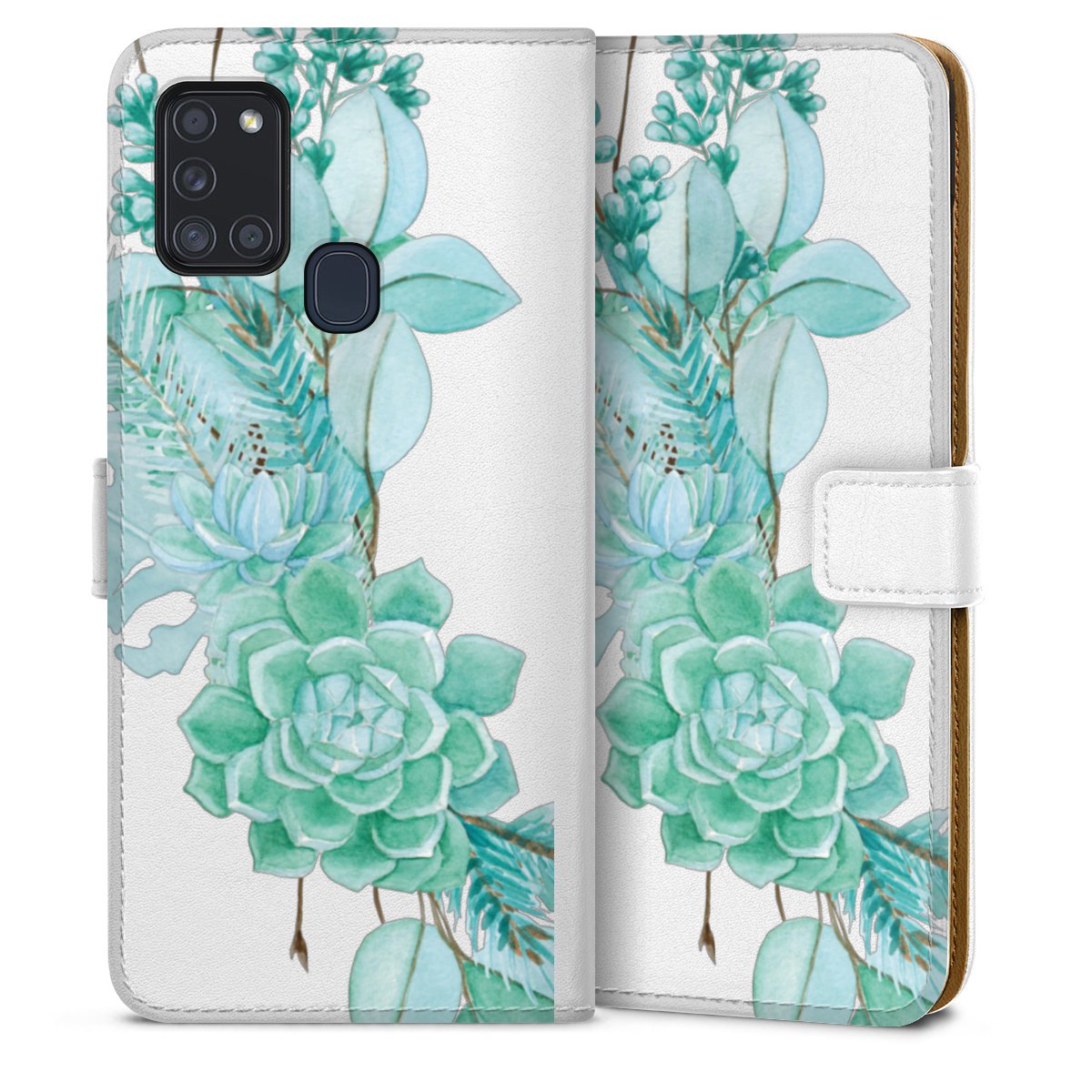 For our Sideflip Case we are using our advanced direct printing technology. The back and frontside are fully printabale, the inside of the phone bag is left unprinted. You can order the phone case without print, printed completely or also with a partial print.