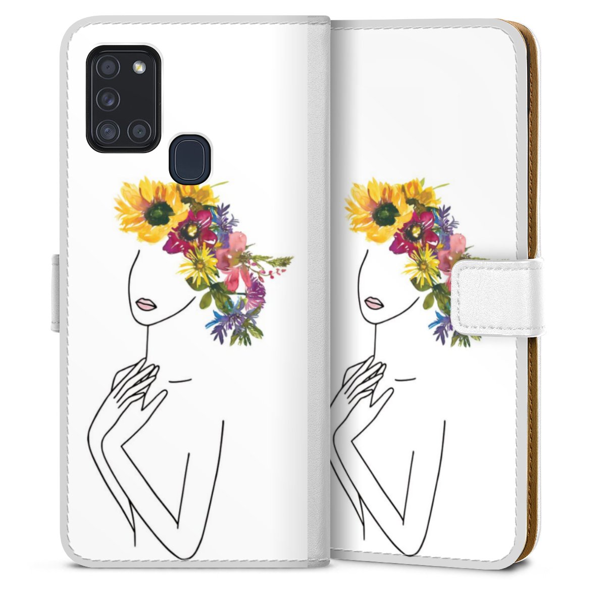 For our Sideflip Case we are using our advanced direct printing technology. The back and frontside are fully printabale, the inside of the phone bag is left unprinted. You can order the phone case without print, printed completely or also with a partial print.