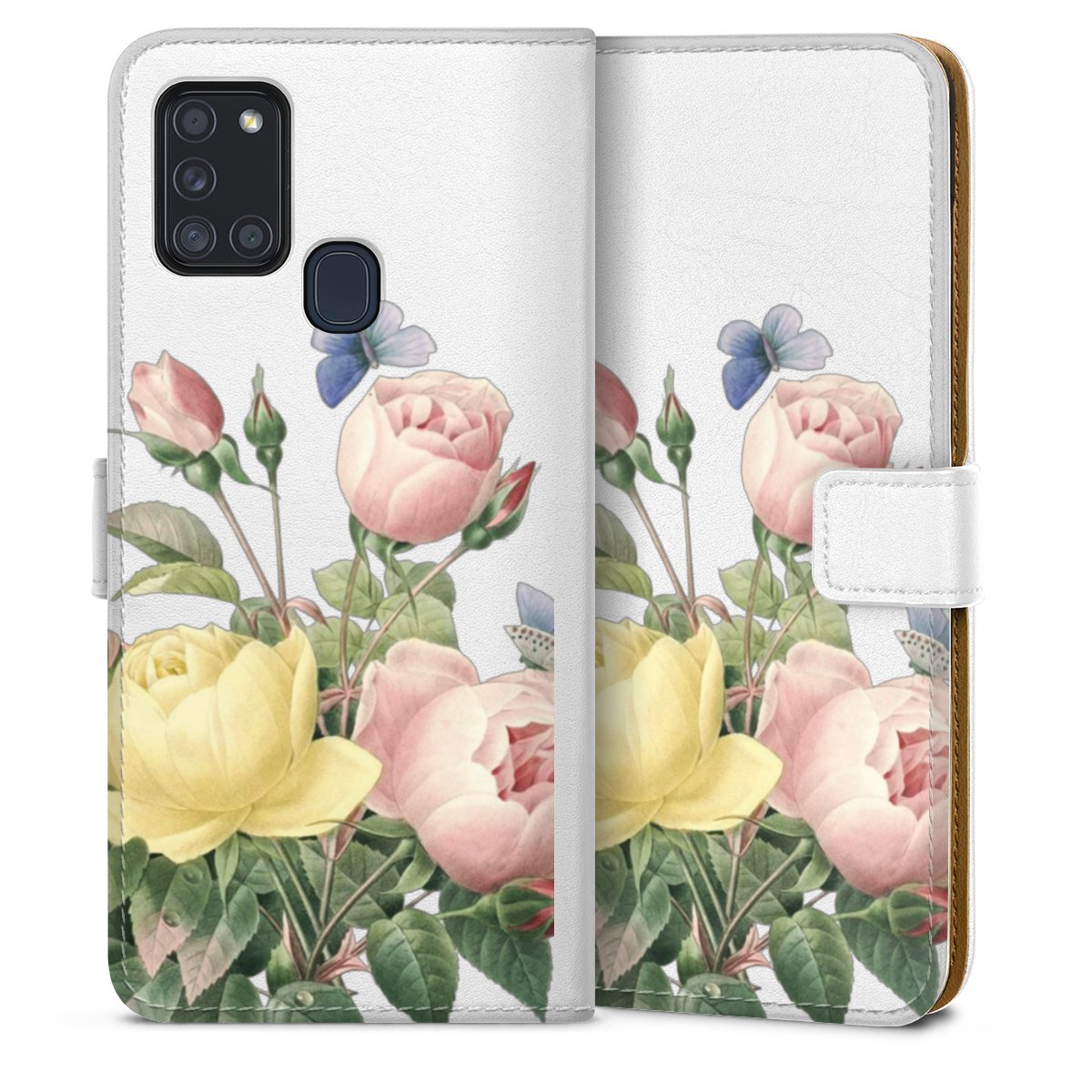 For our Sideflip Case we are using our advanced direct printing technology. The back and frontside are fully printabale, the inside of the phone bag is left unprinted. You can order the phone case without print, printed completely or also with a partial print.