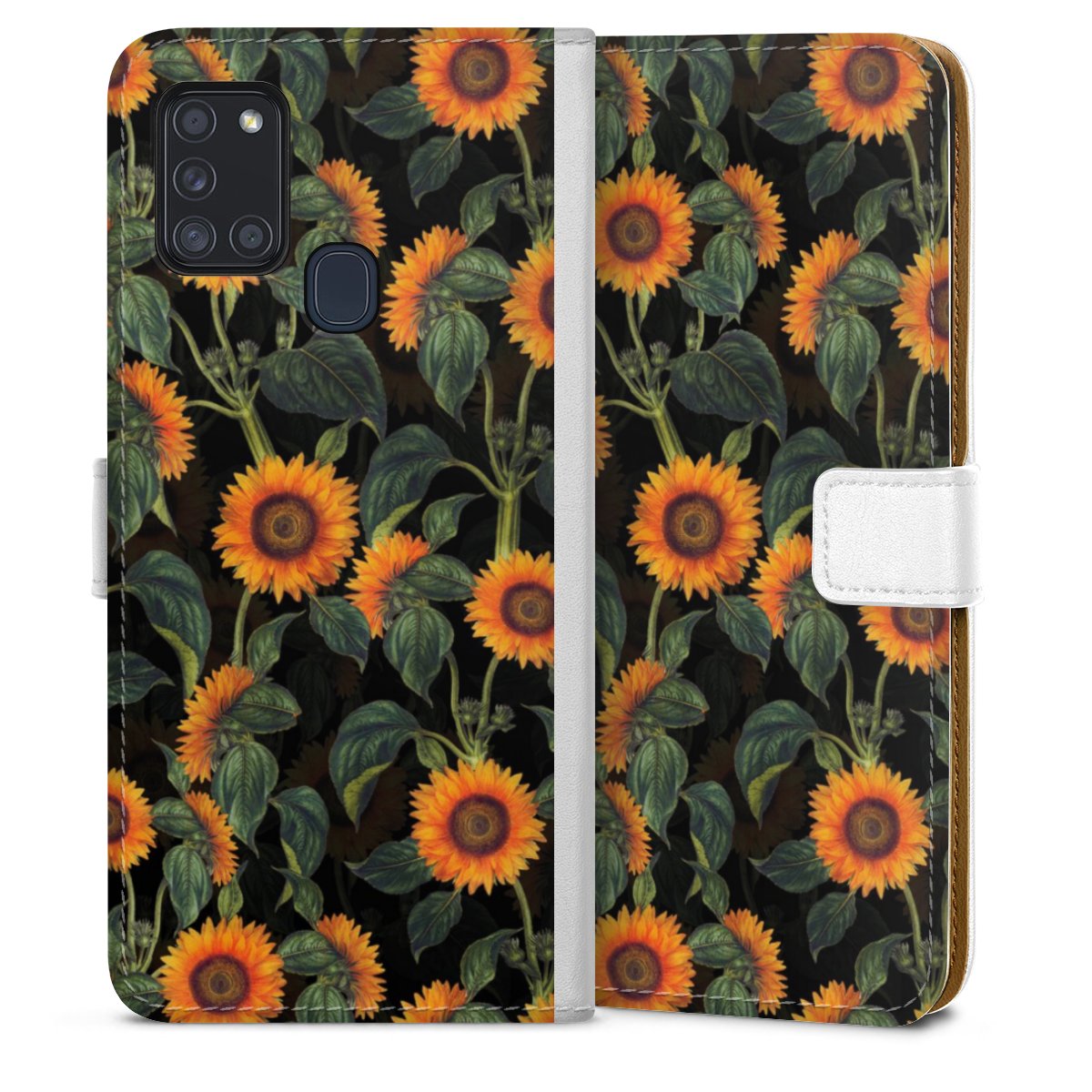 For our Sideflip Case we are using our advanced direct printing technology. The back and frontside are fully printabale, the inside of the phone bag is left unprinted. You can order the phone case without print, printed completely or also with a partial print.